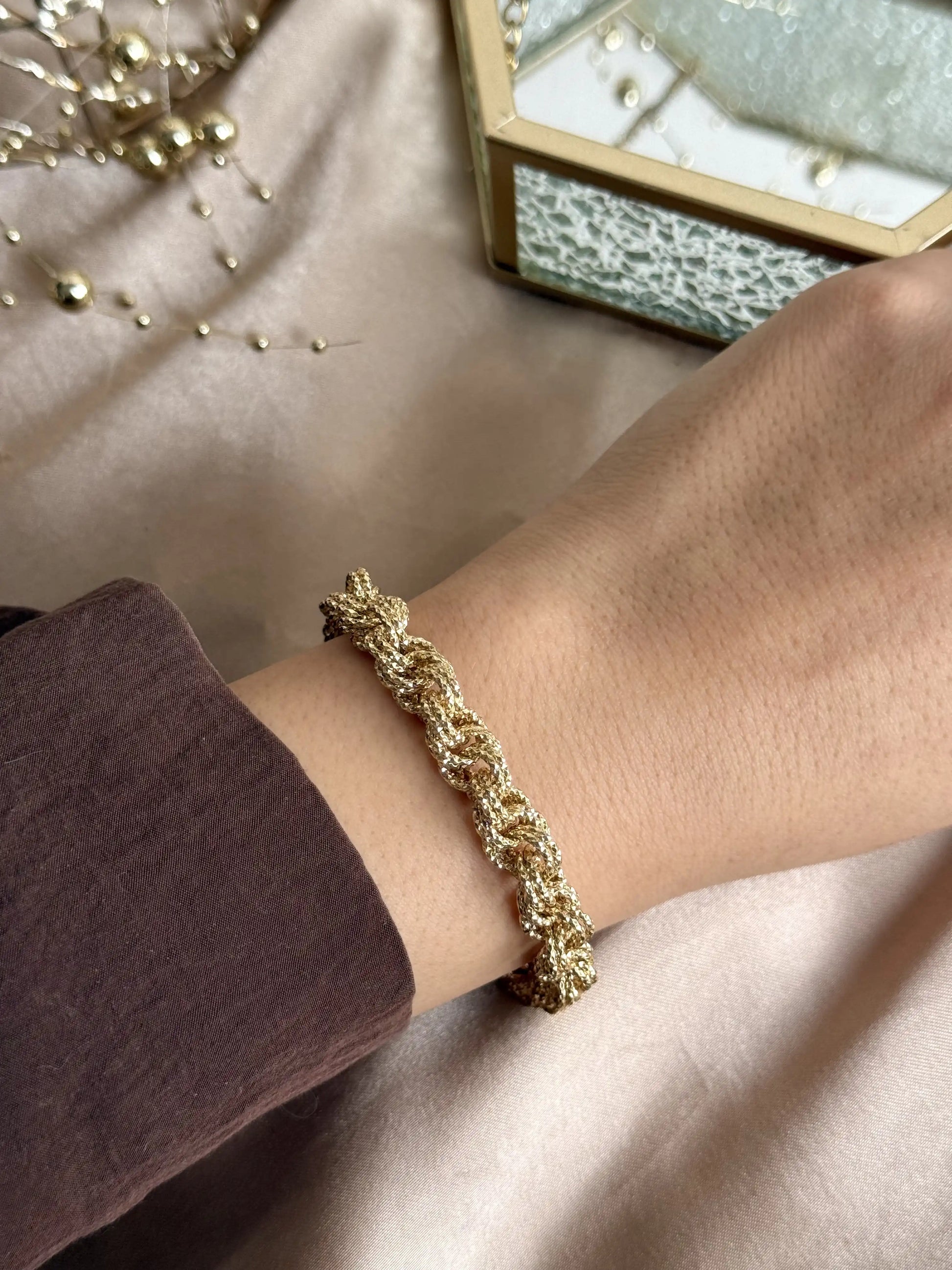 Altın bileklik işçiliği ile uygun fiyatların birleşimi! 14 ayar rengindedir.