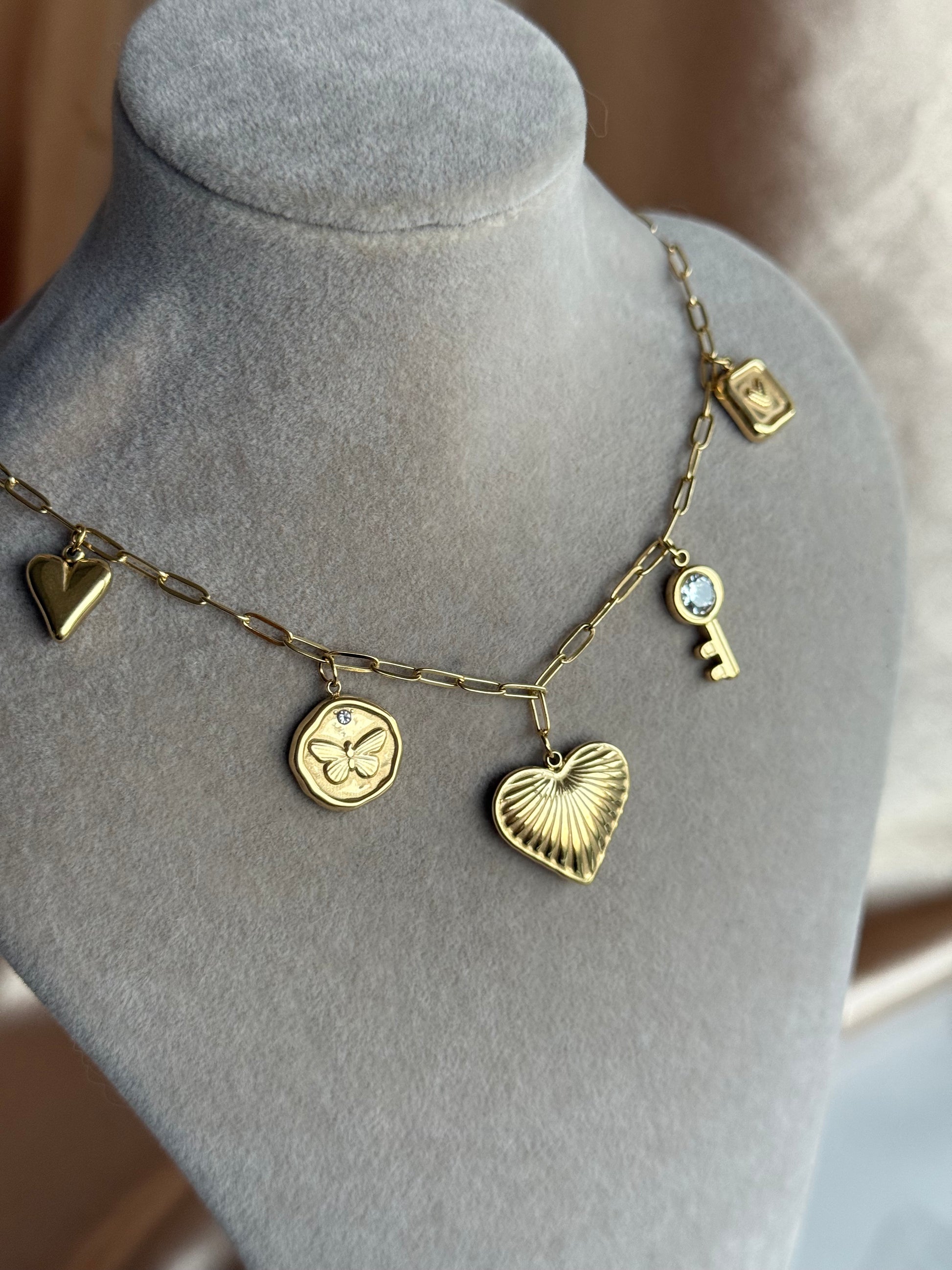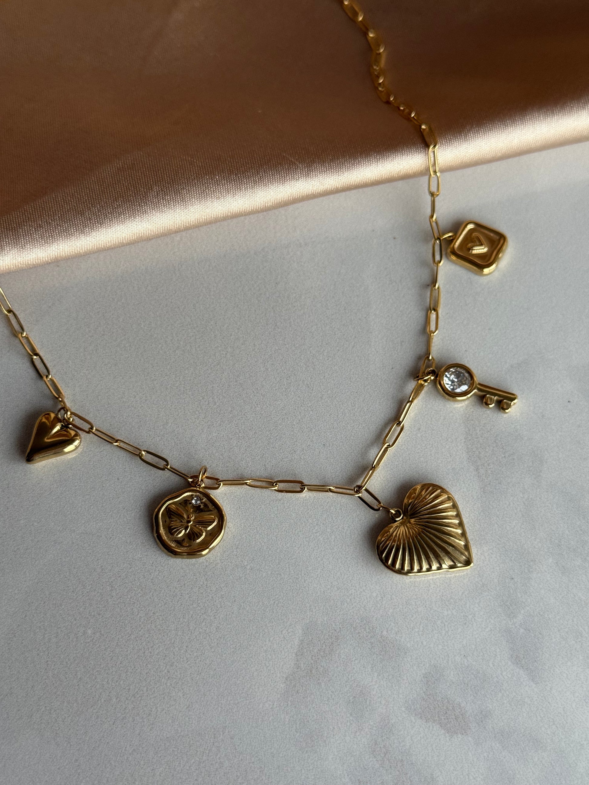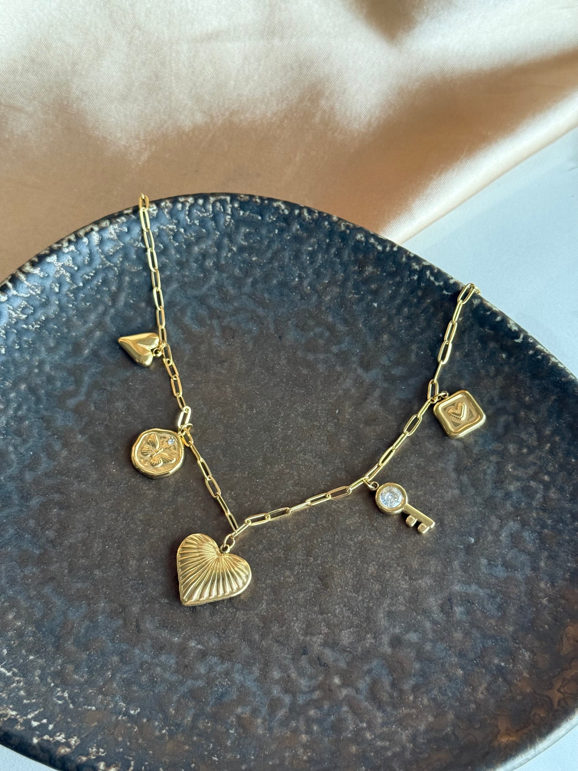 Çelik Kalp Anahtar Charm Kolye