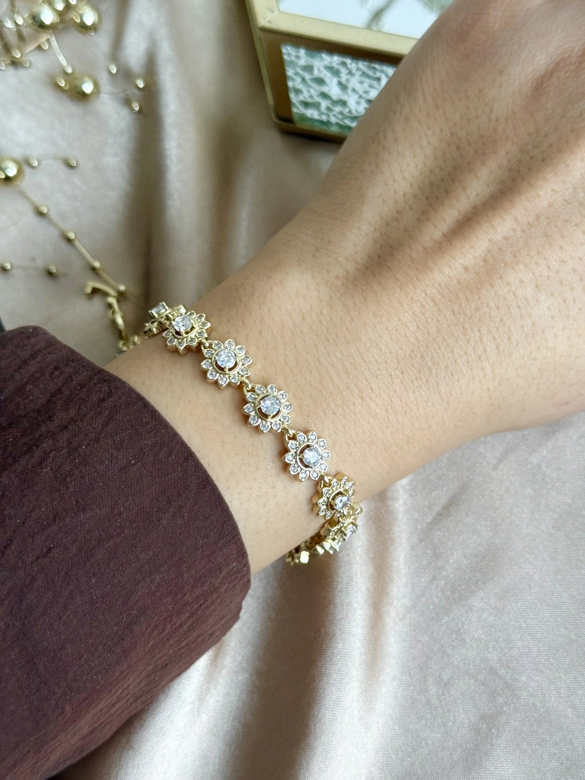 Çiçek Taşlı Bileklik 14 Ayar Özel Seri