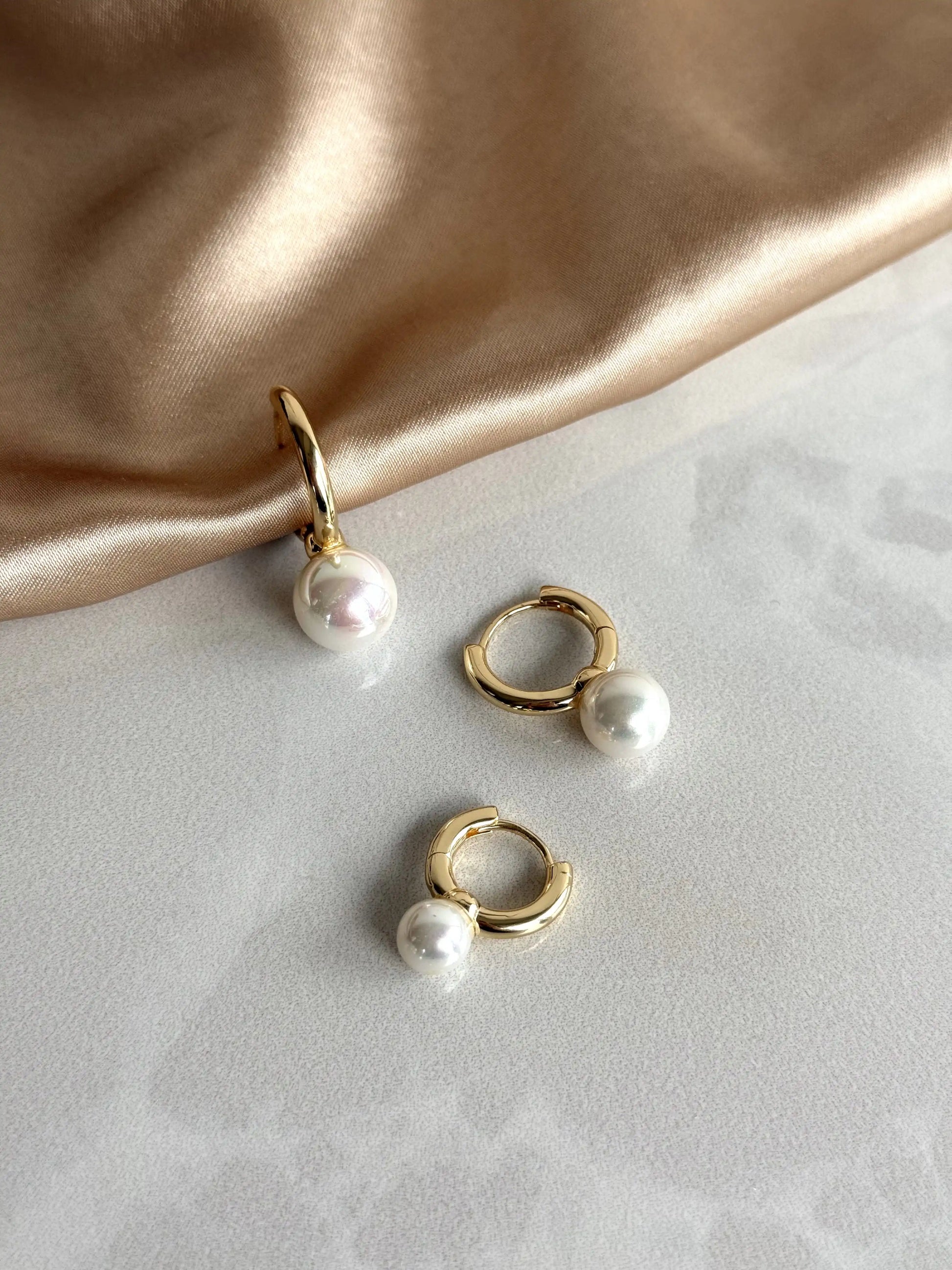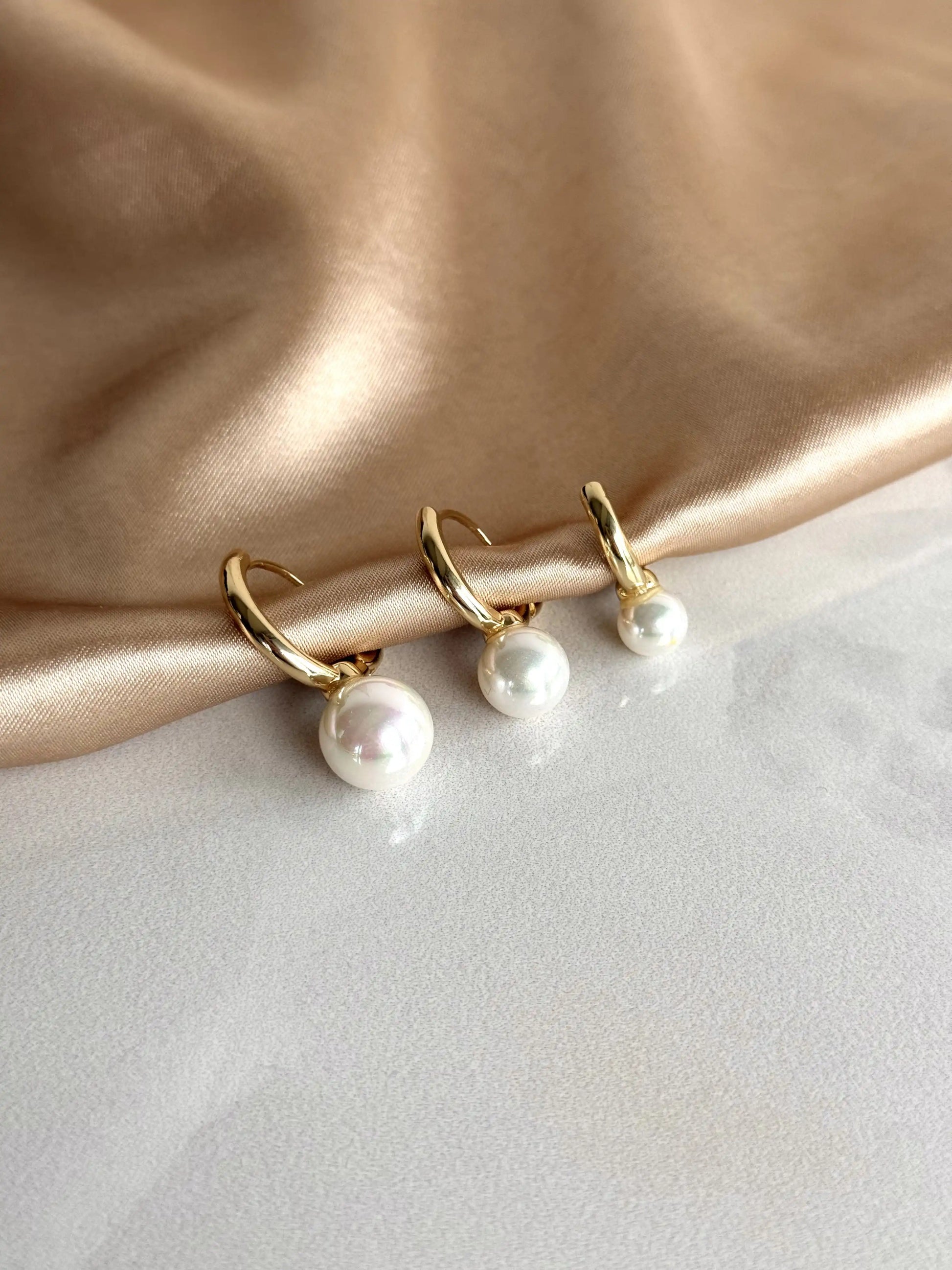 İnci Halka Küpe (3 Boy) 14 Ayar Serisi