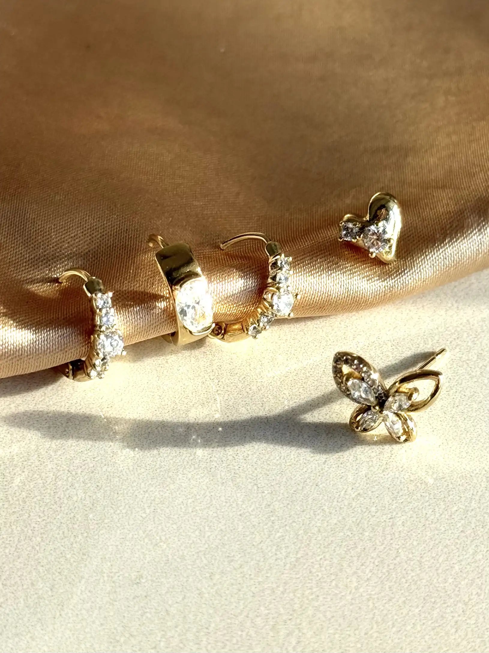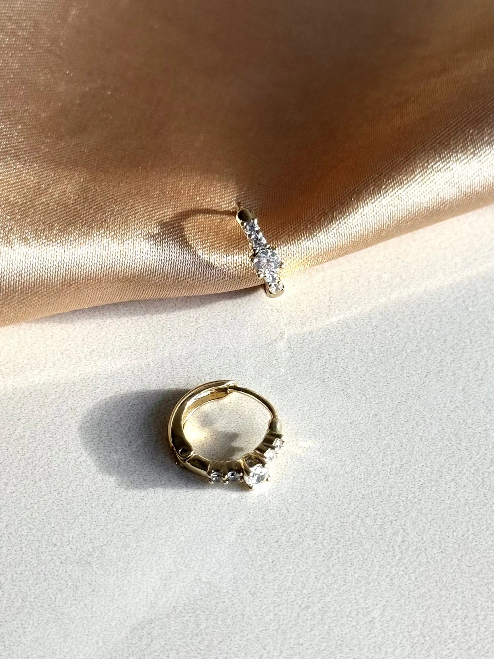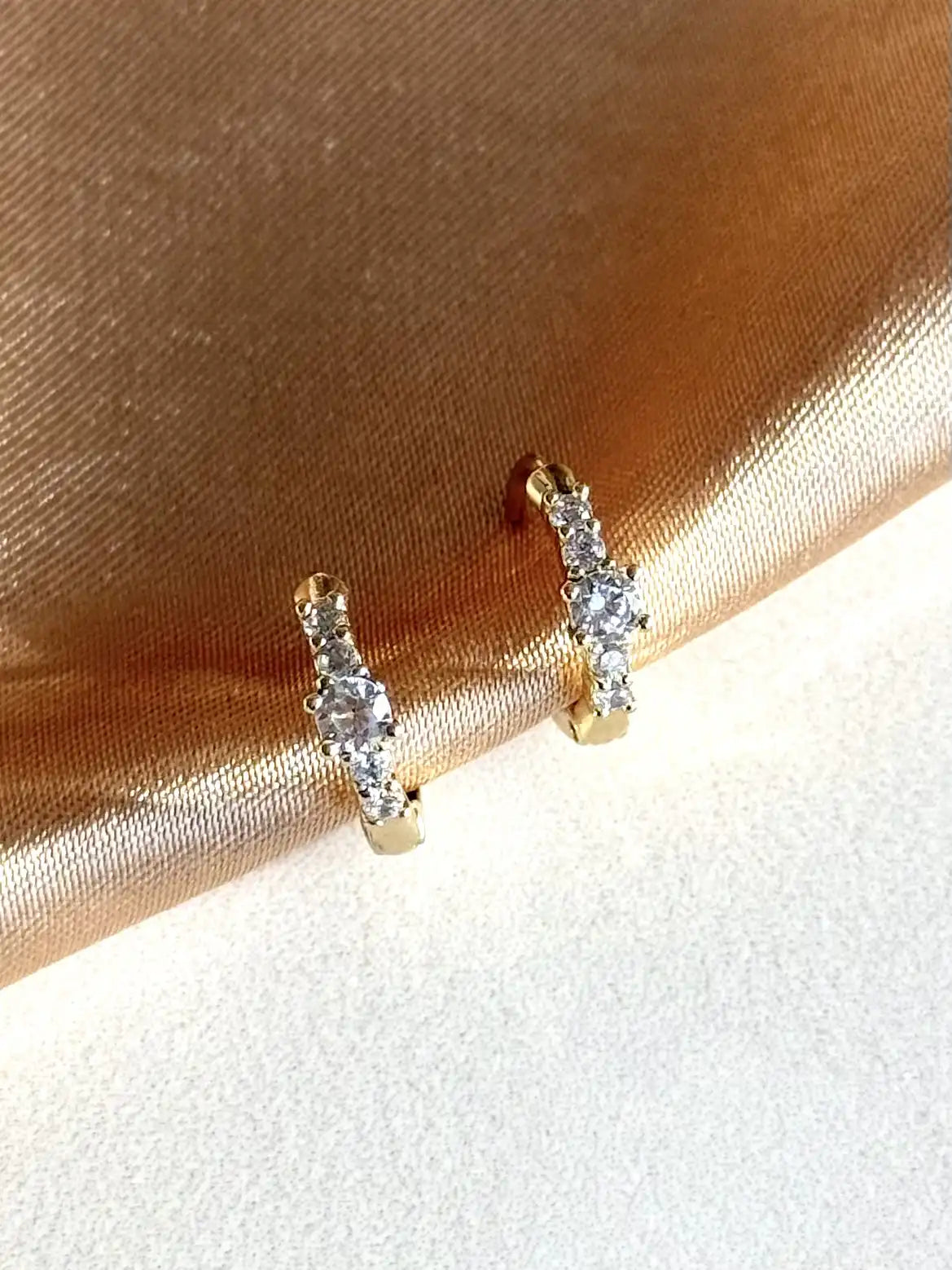 İnce Pırlanta Taşlı Halka Küpe 14 Ayar Serisi