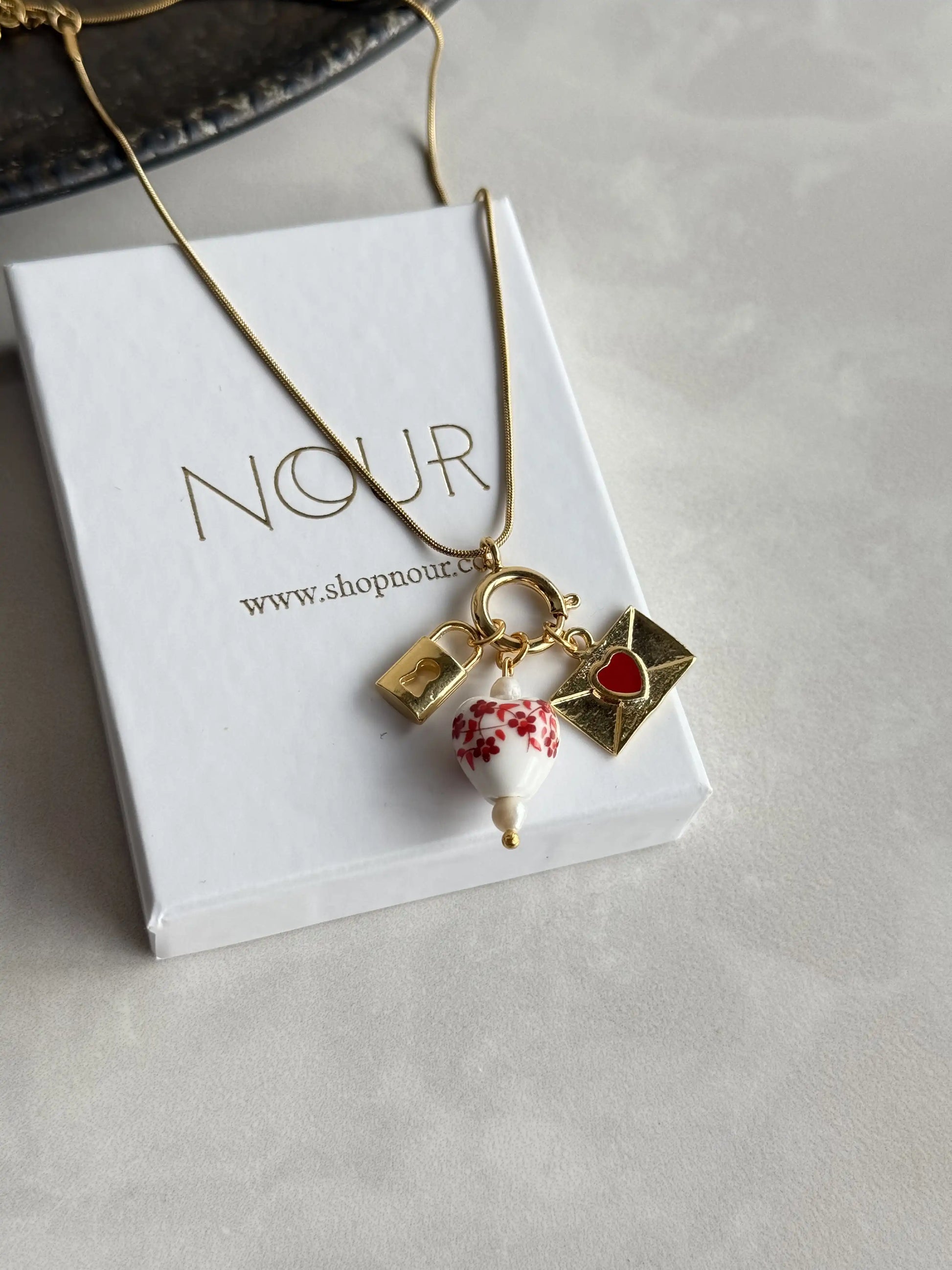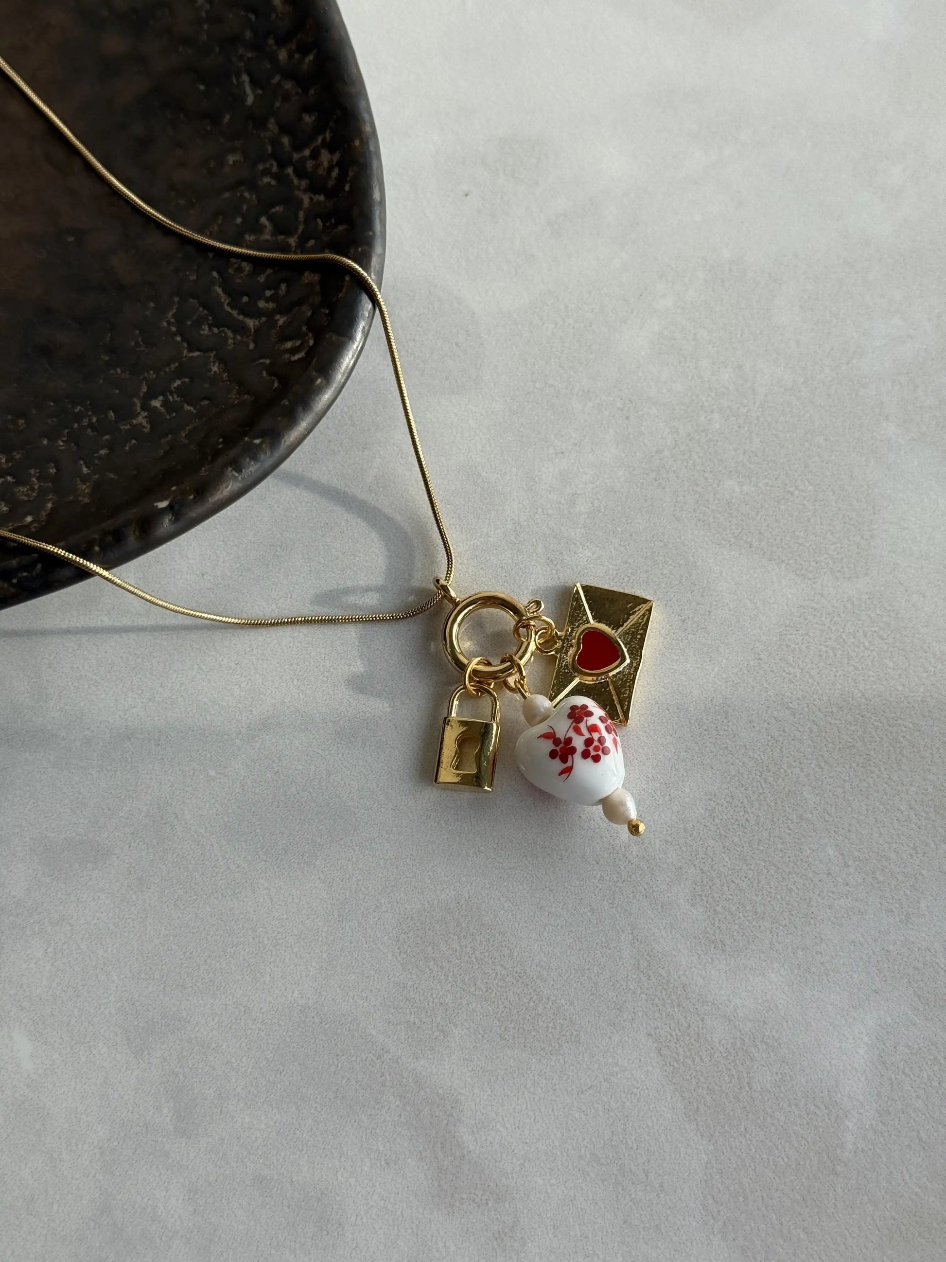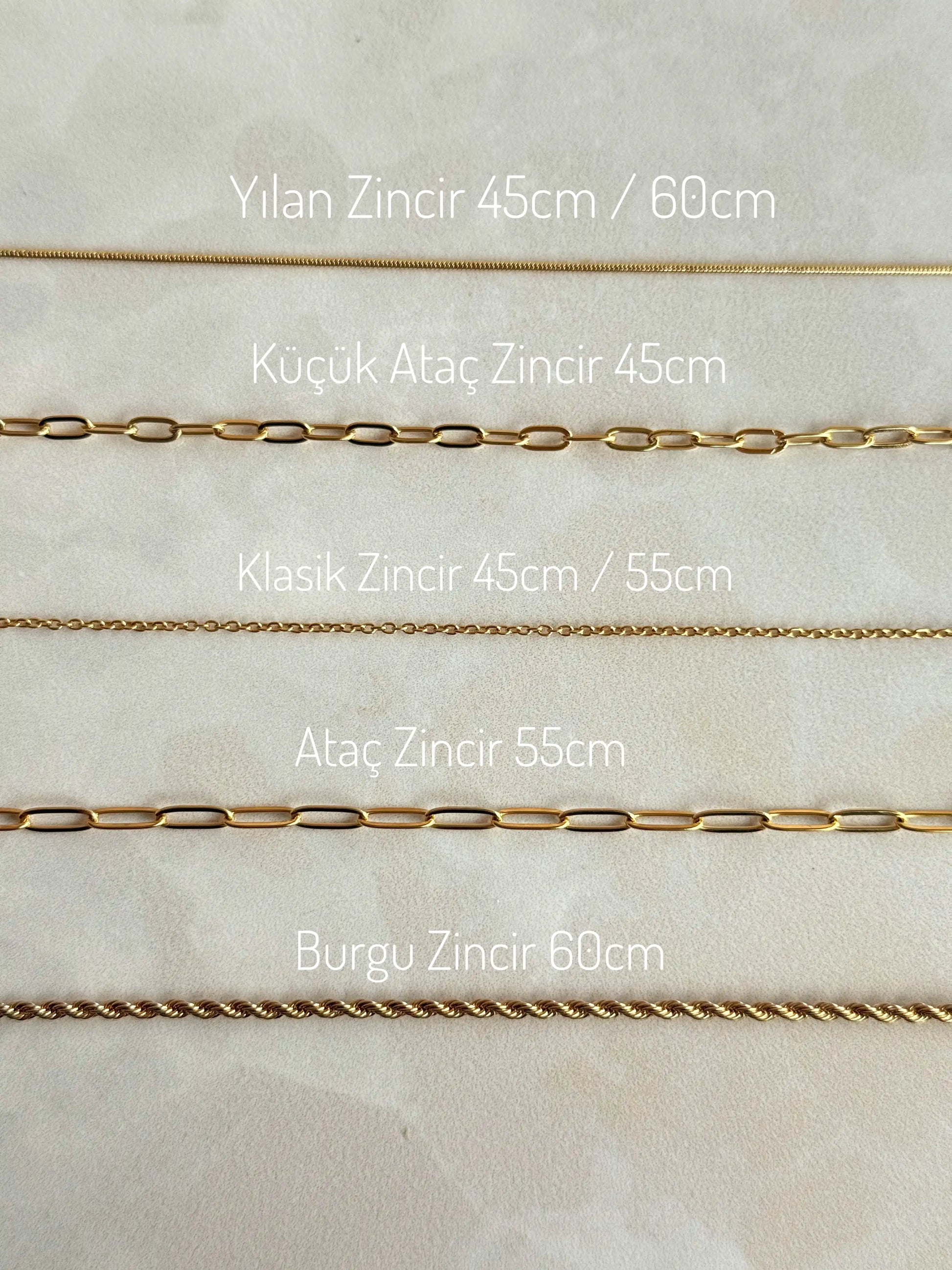Zincir çeliktir, charmlar pirinç üstü altın kaplamadır.