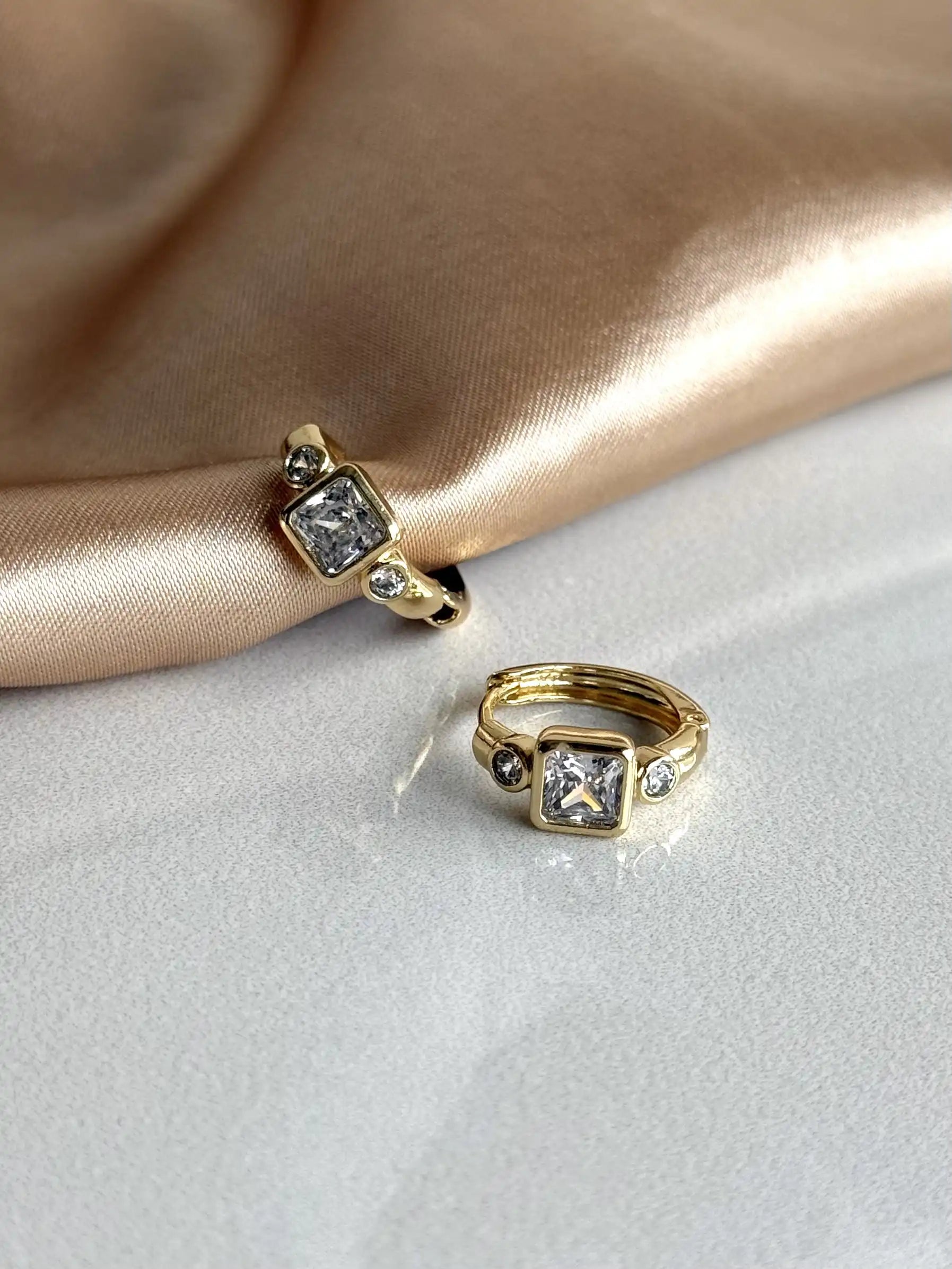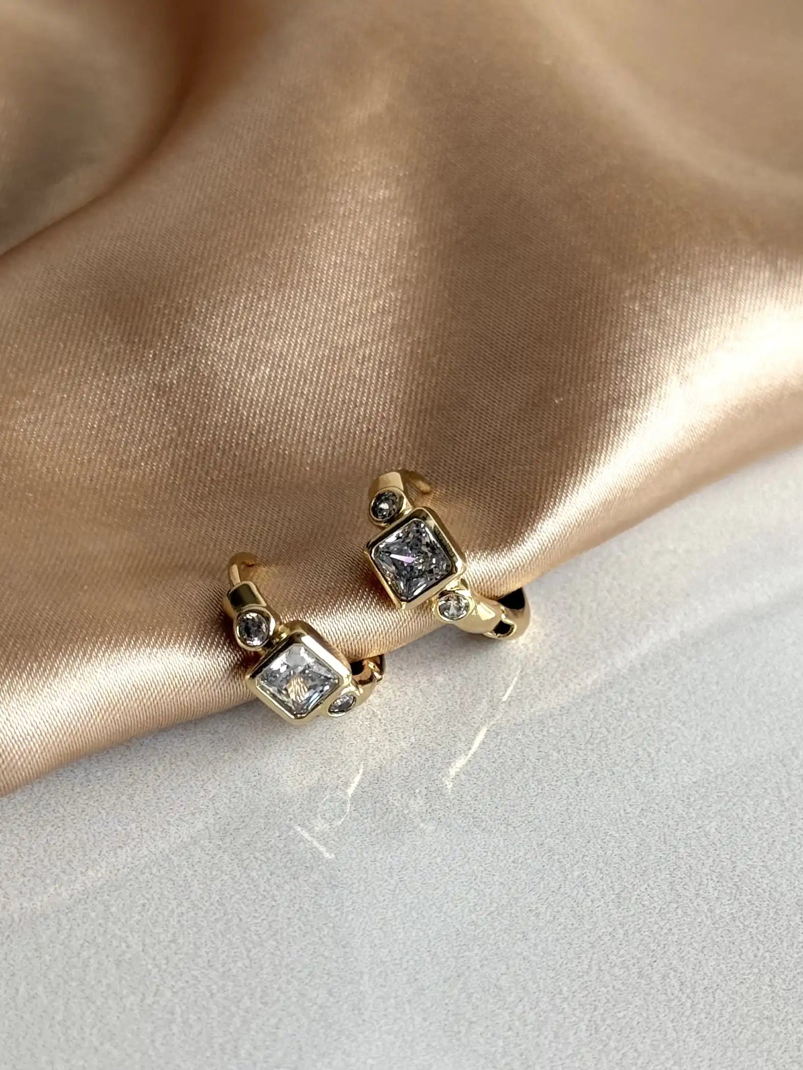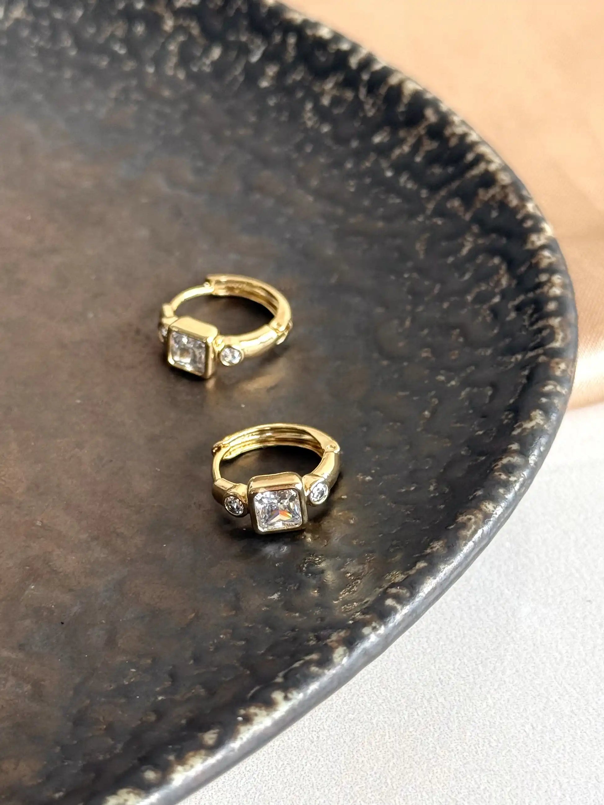 Kare Minimal Halka Küpe 14 Ayar Serisi