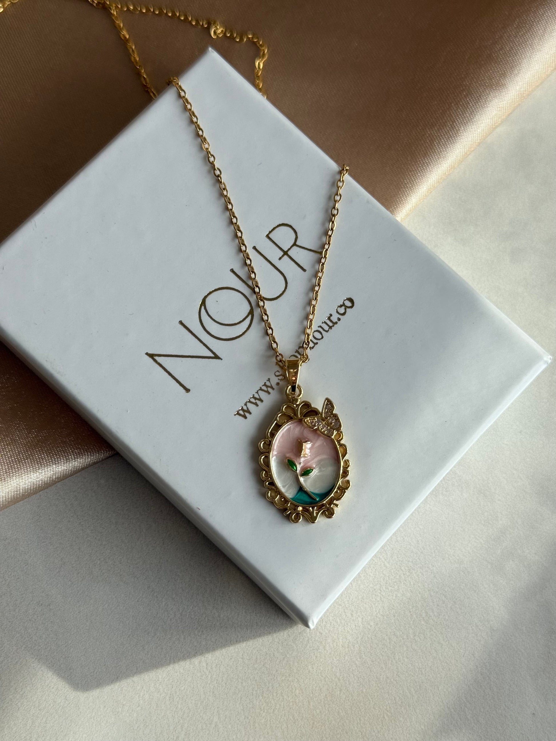 Zincir çeliktir, kolye uçları altın kaplamadır.