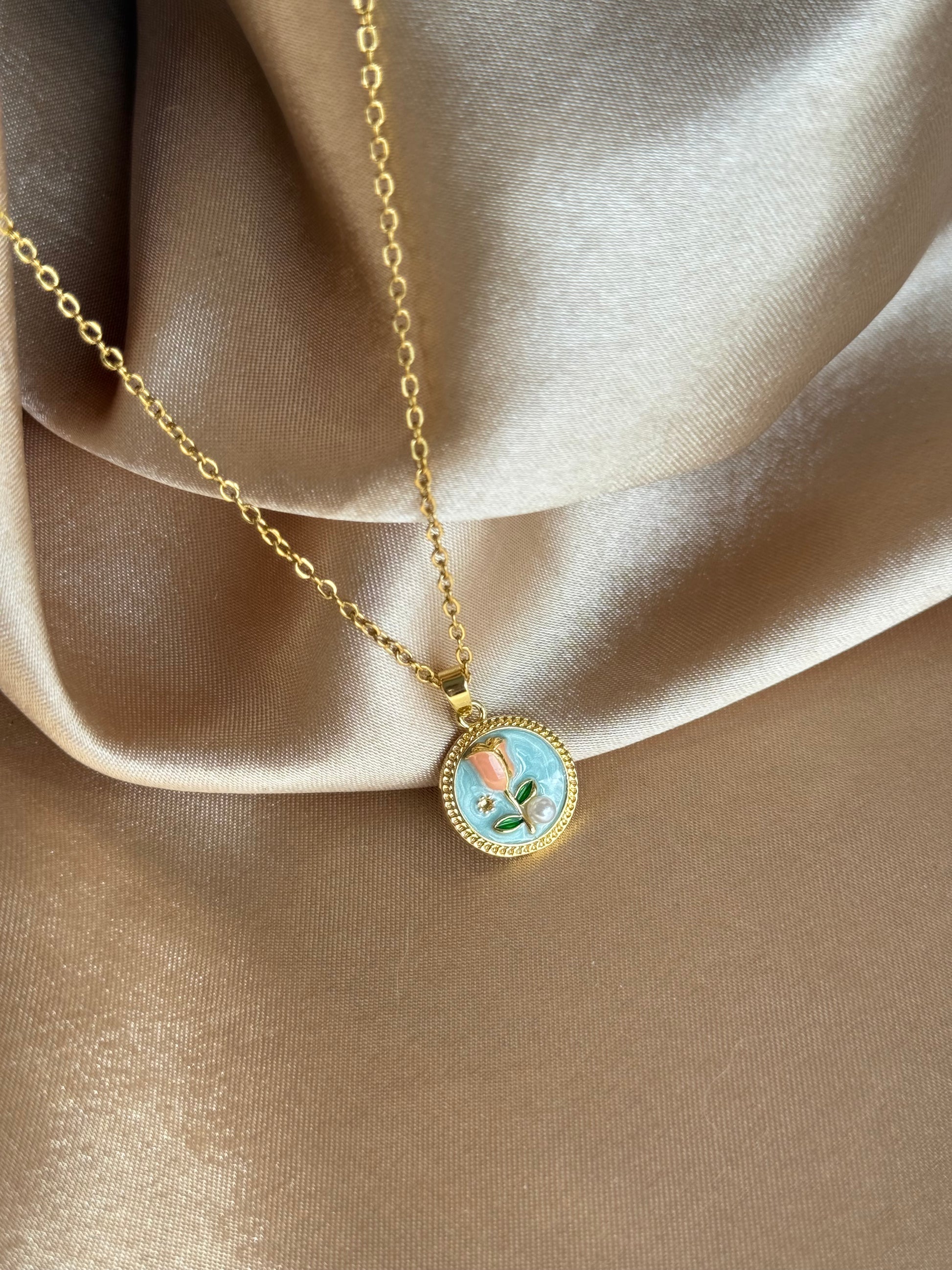 Zincir çeliktir, kolye uçları altın kaplamadır.