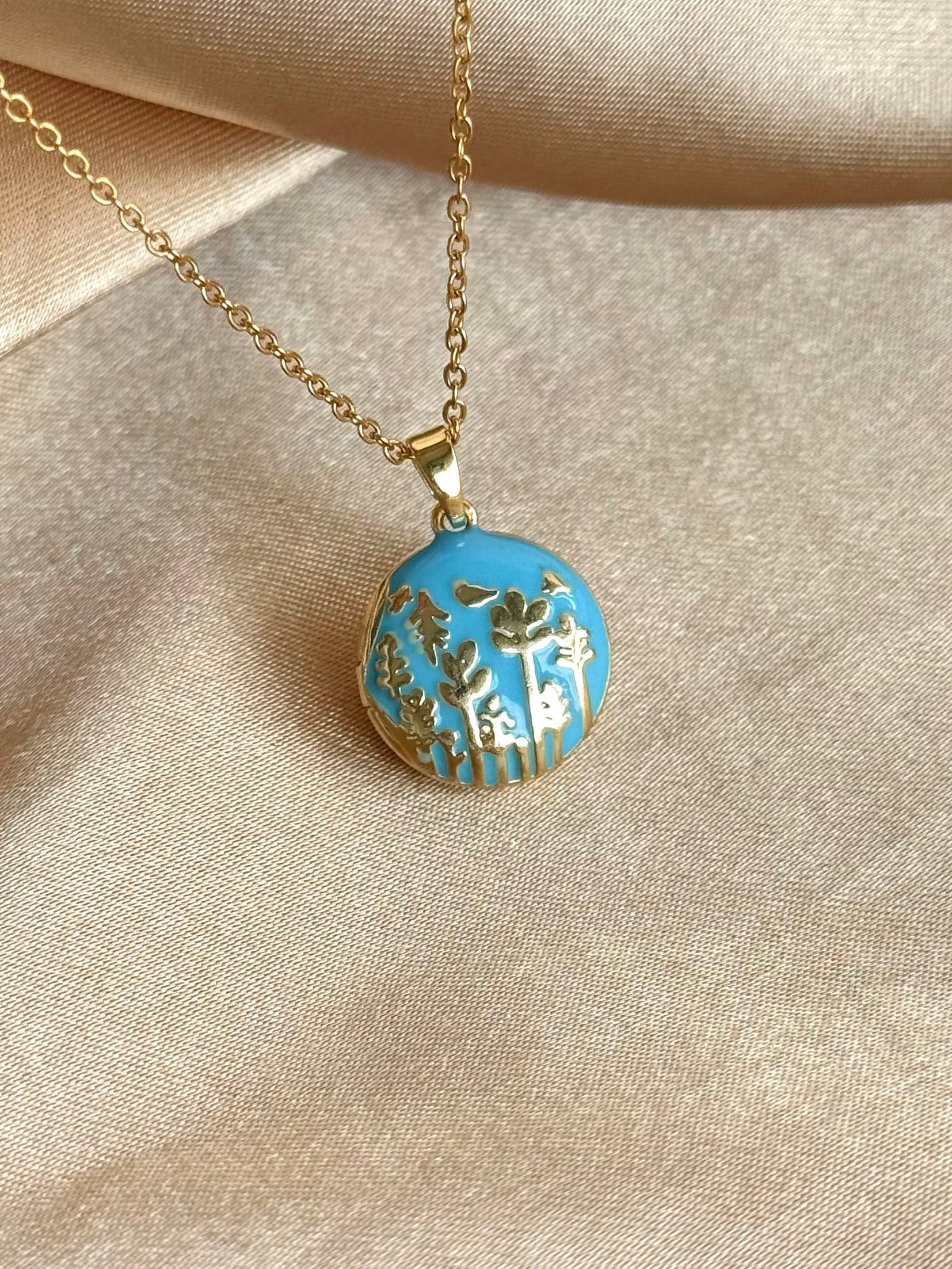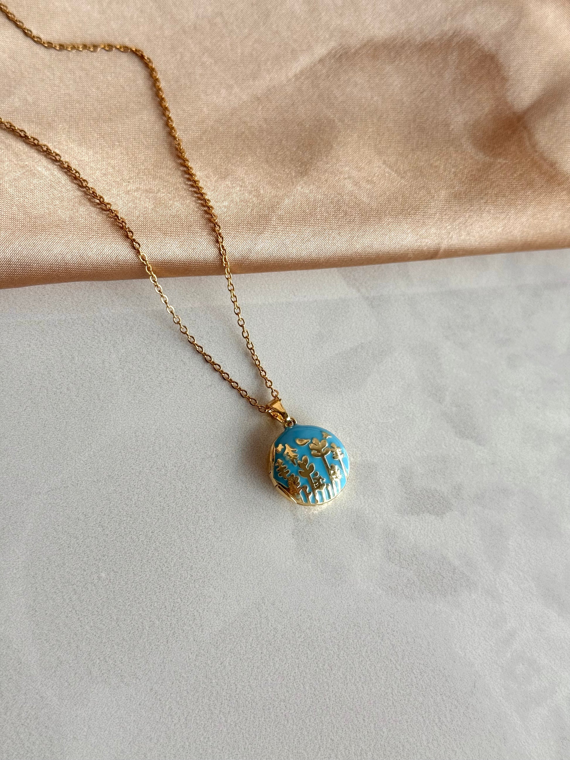 Mavi Başak Madalyon Kolye