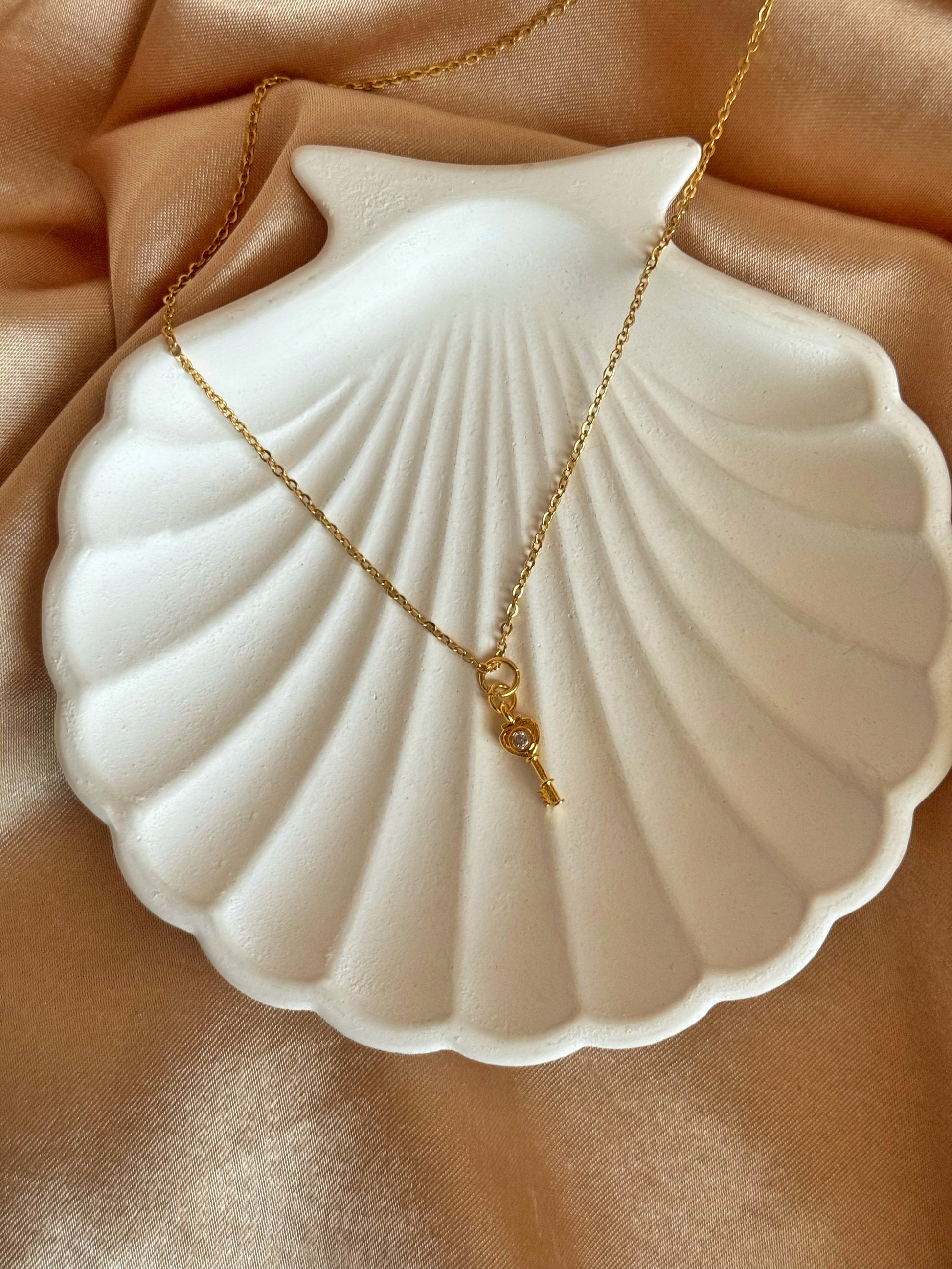 Zincir kısmı çeliktir, kolye ucu altın kaplamadır.