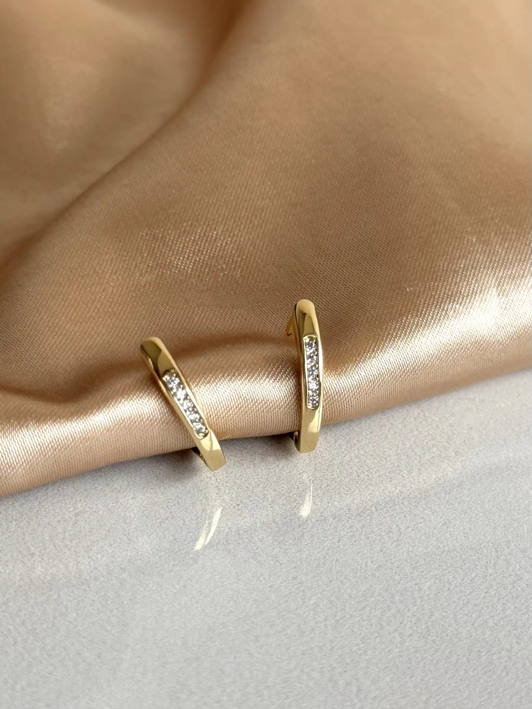 Oval Minimal Taşlı Küpe 14 Ayar Serisi