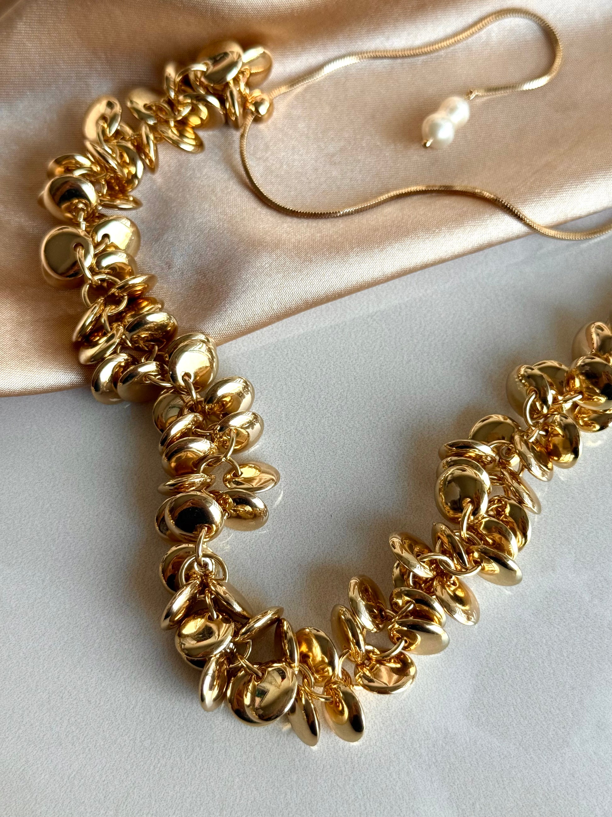 Bu setimizde malzeme pirinç üstü altın kaplama kullanılmıştır. Renk 18 ayardır. Parlaklığını ve rengini koruması adına kimyasal ıslak ortam önerilmez.