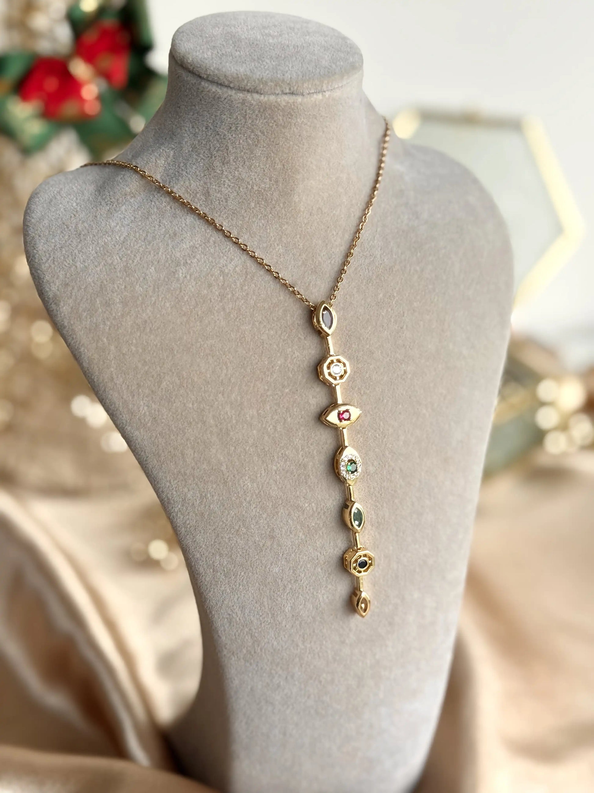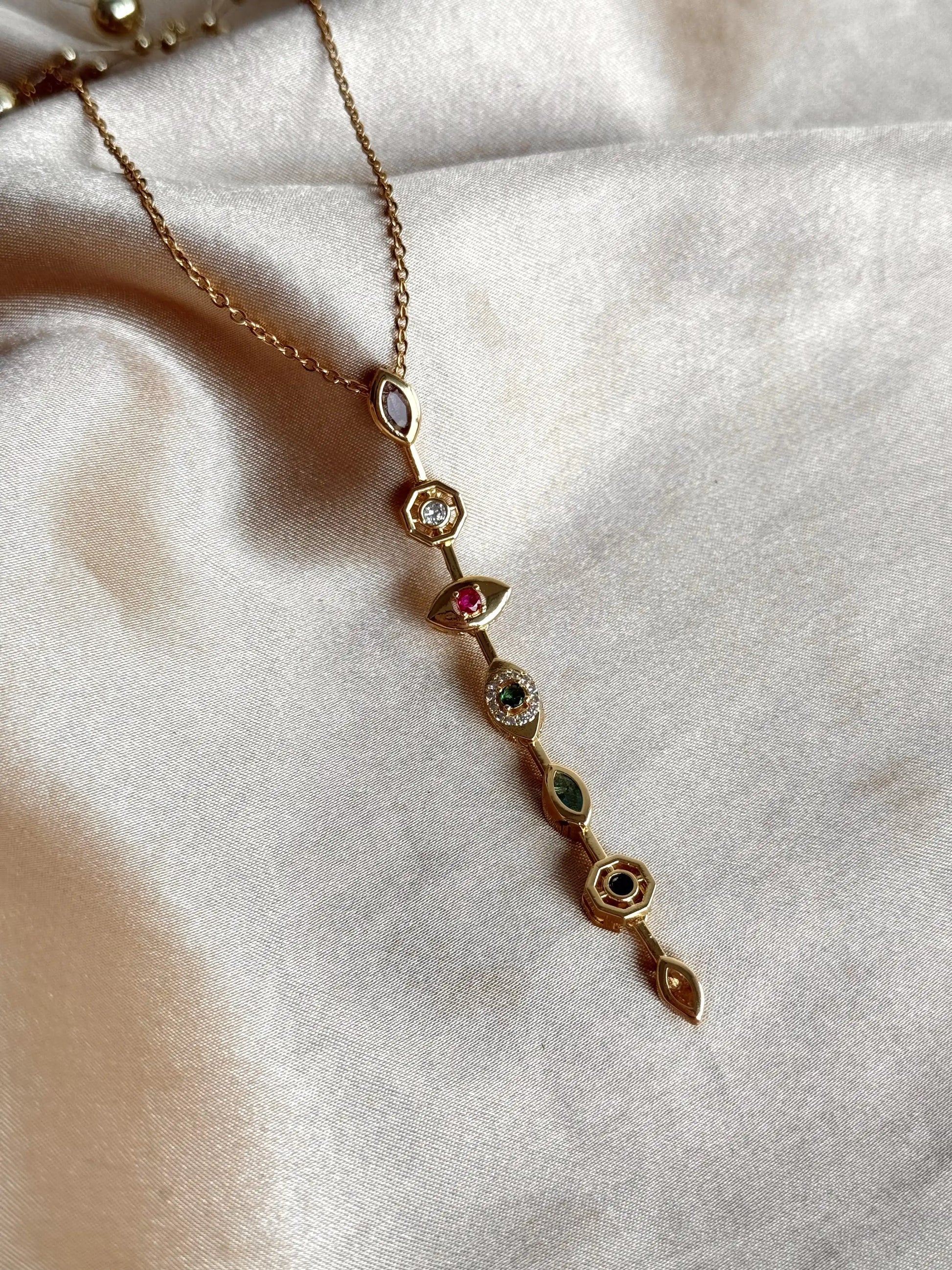 Zinciri çeliktir kararma yapmaz, ucu pirinç üstü altın kaplamadır. Zirkon taşlıdır. Altın kaplama uçlarda ıslak ortam, kimyasal önerilmez.