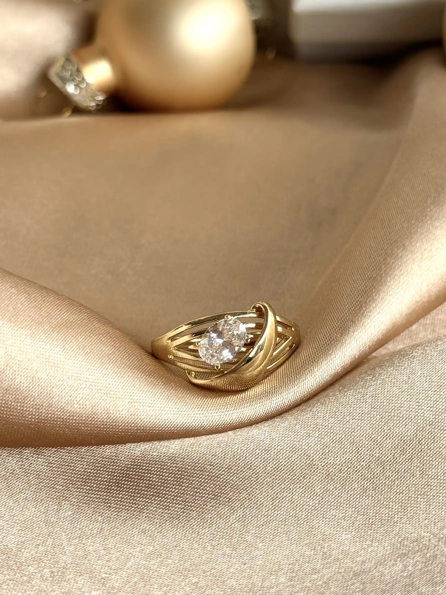 Taşlı Asimetrik Yüzük 14 Ayar Serisi