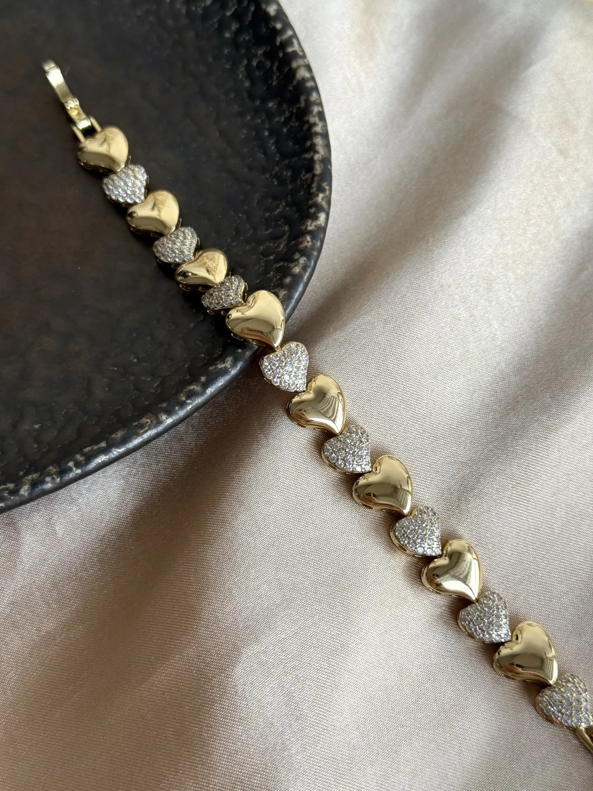 Taşlı Kalp Bileklik 14 Ayar Özel Seri