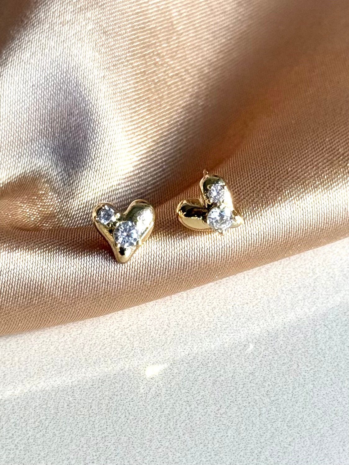 Taşlı Kalp Küpe 14 Ayar Serisi