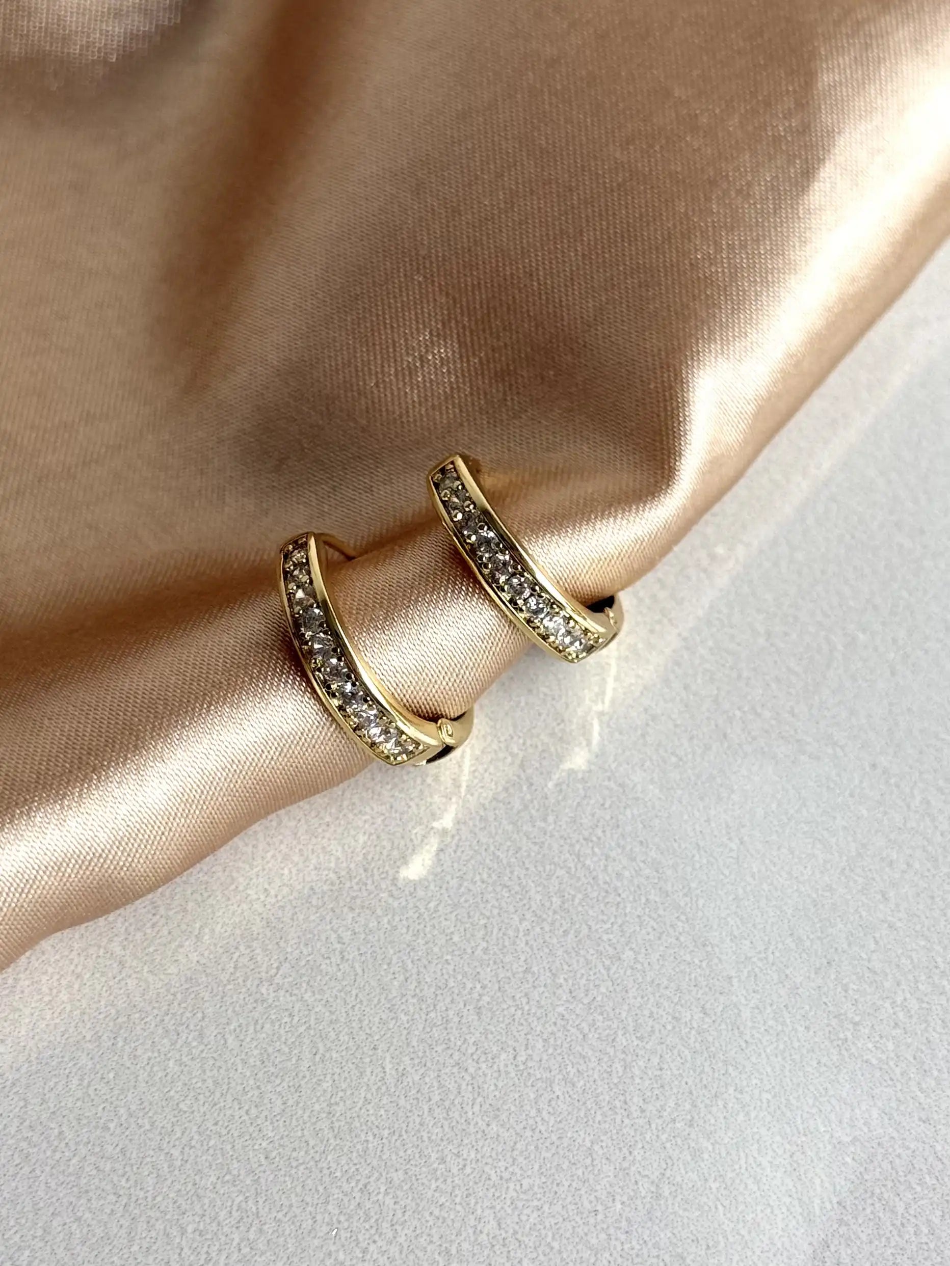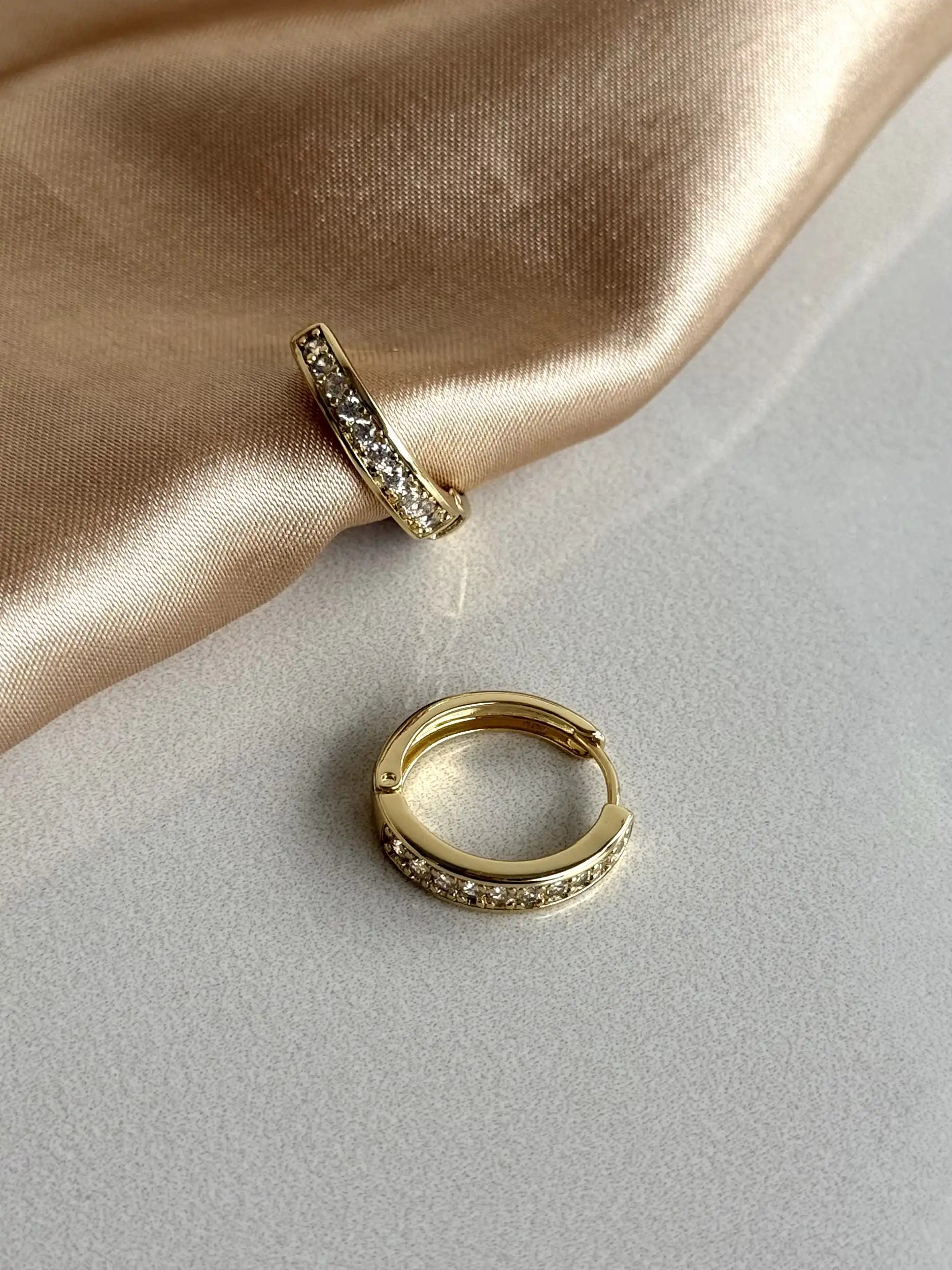 Taşlı Sade Halka Küpe 14 Ayar Serisi