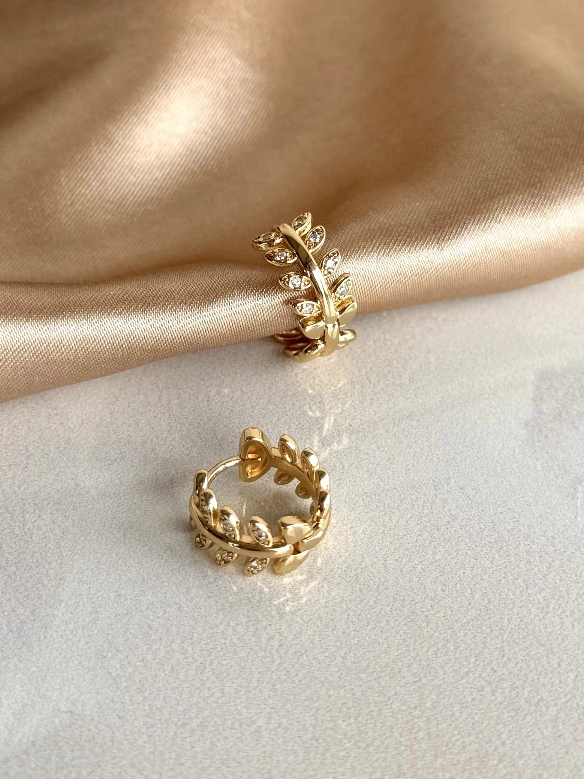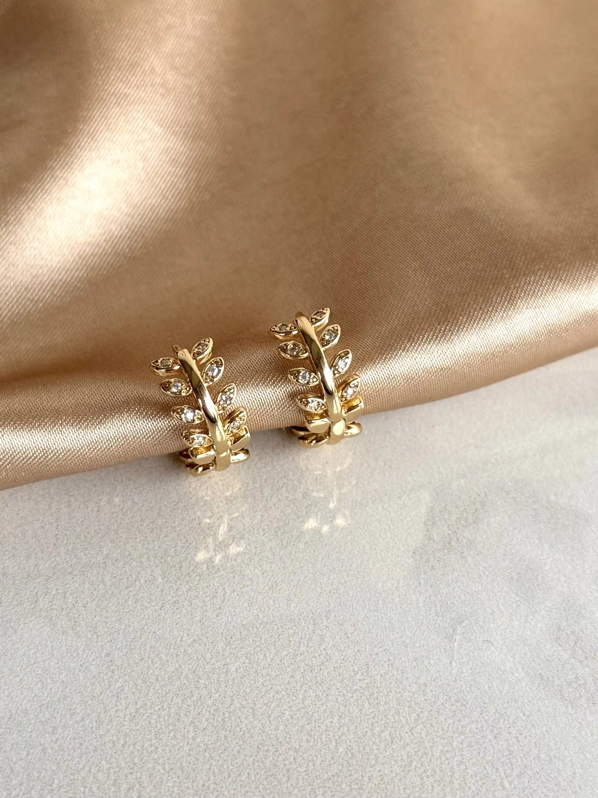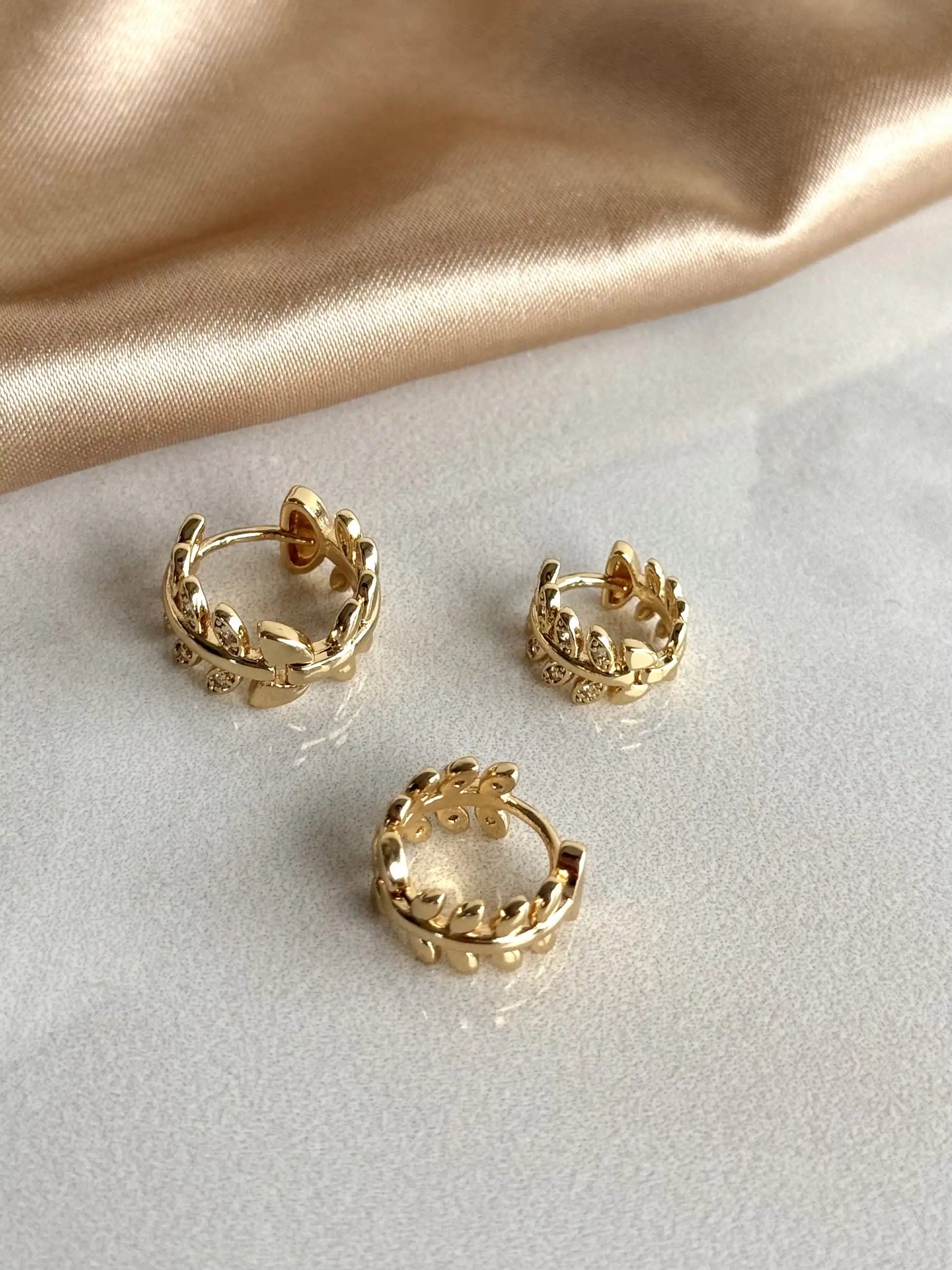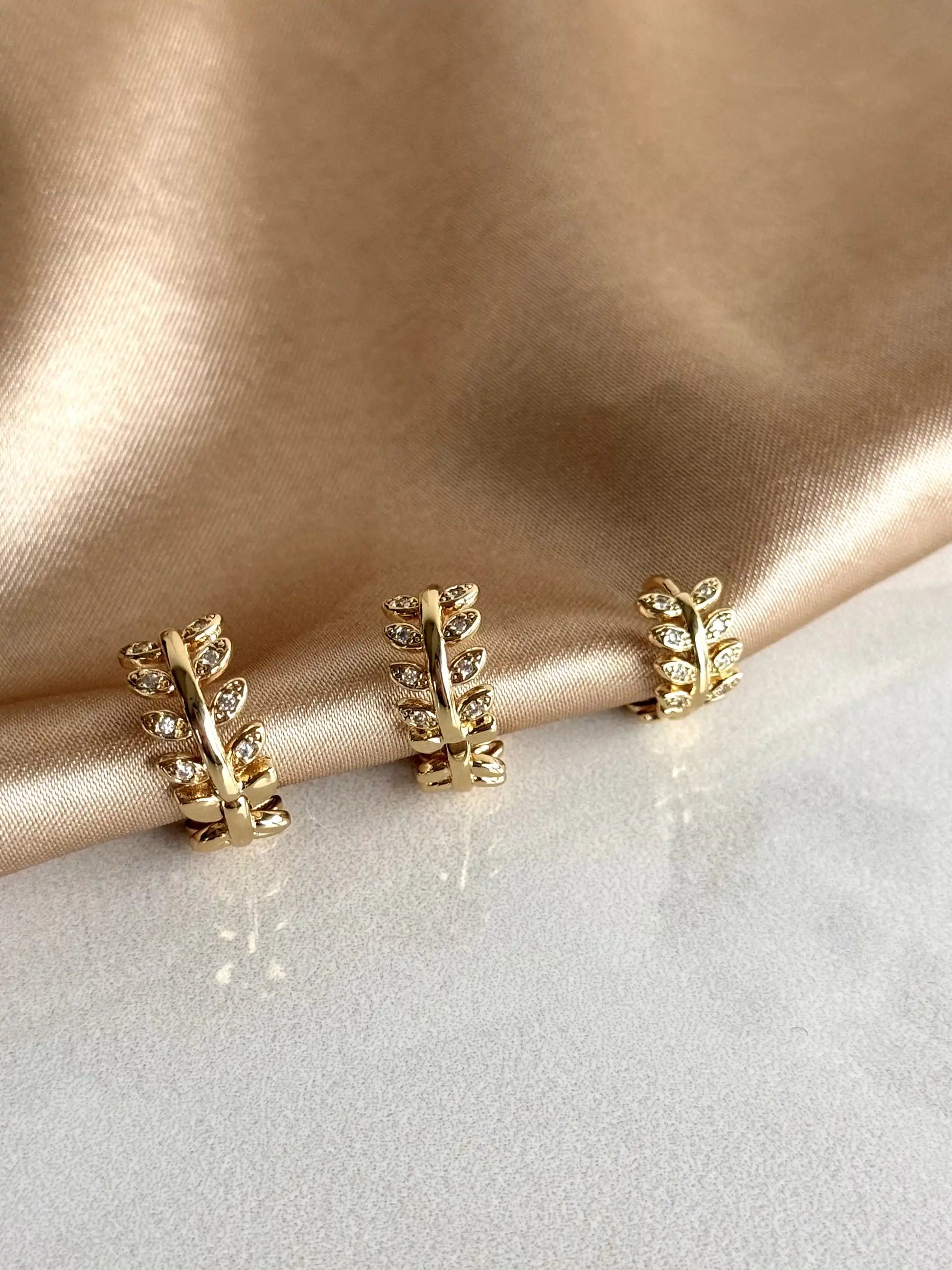 Taşlı Yaprak Küpe (3 Boy) 14 Ayar Serisi