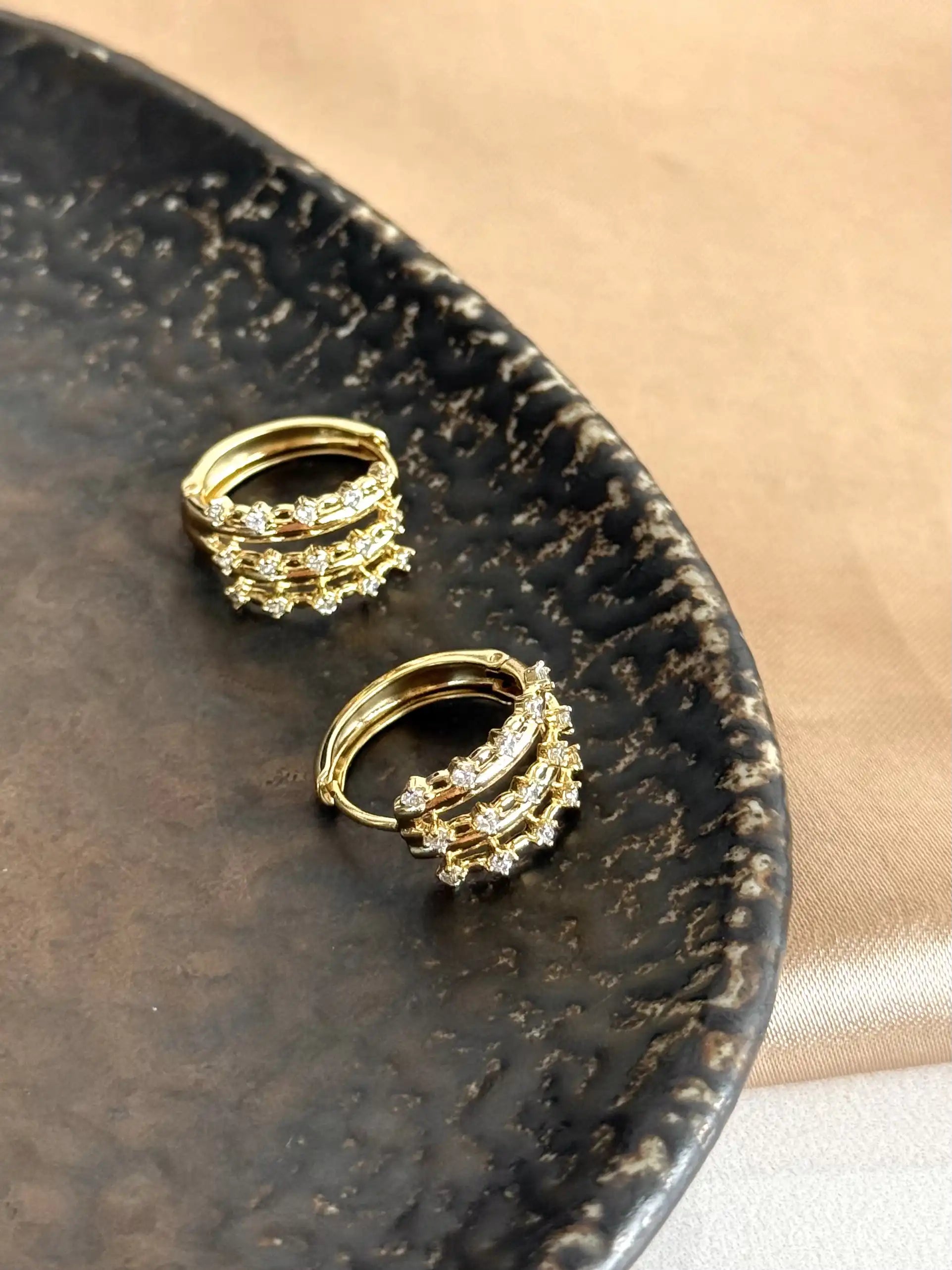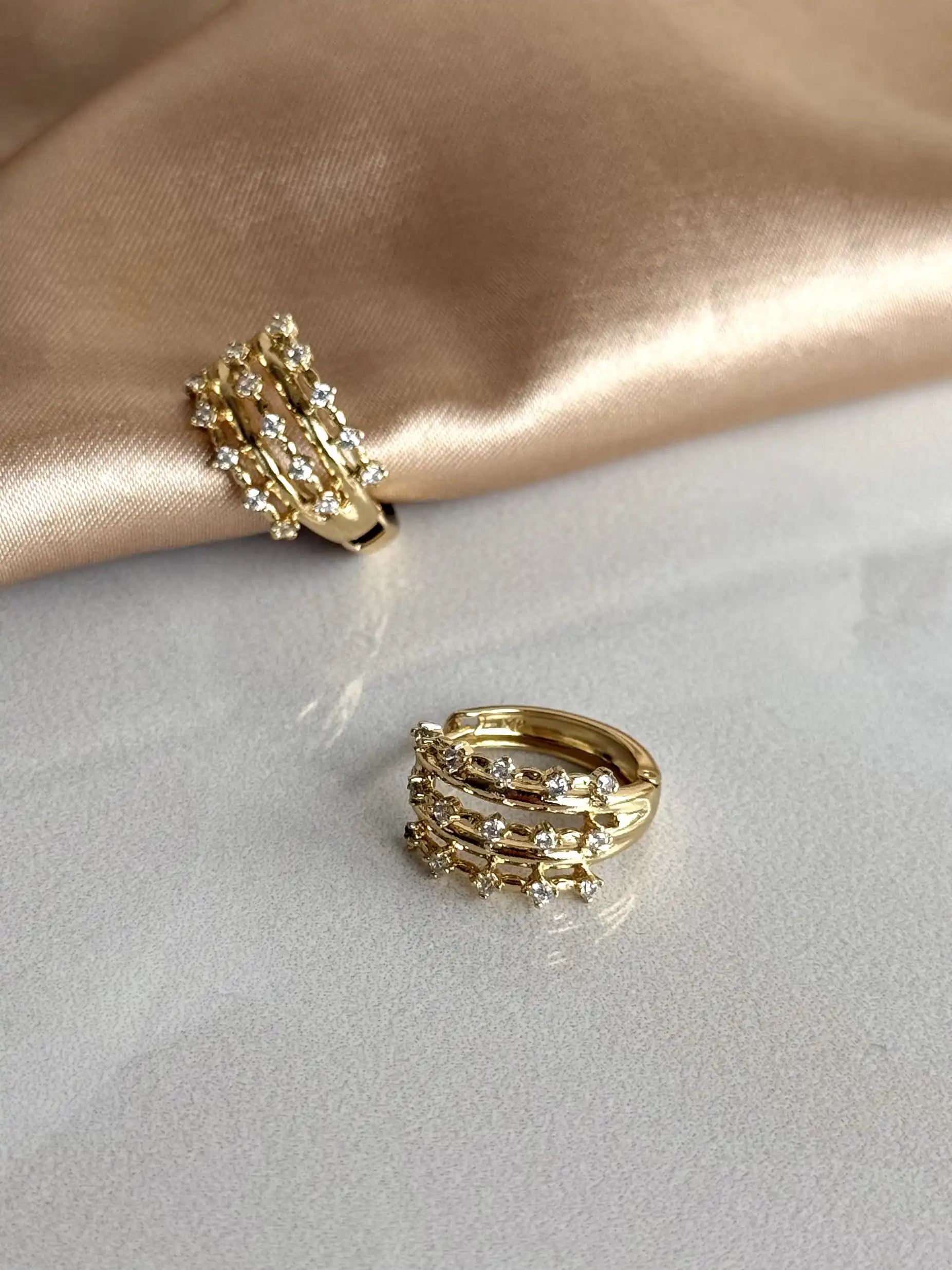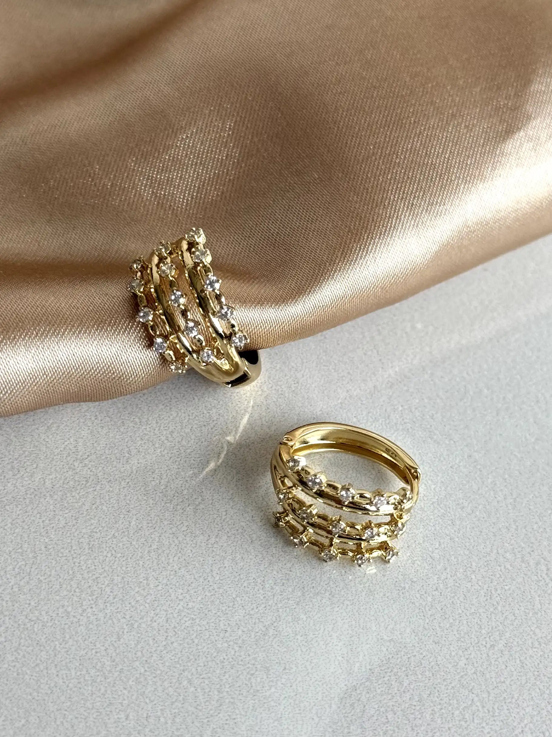 Üç Halkalı Taşlı Küpe 14 Ayar Serisi