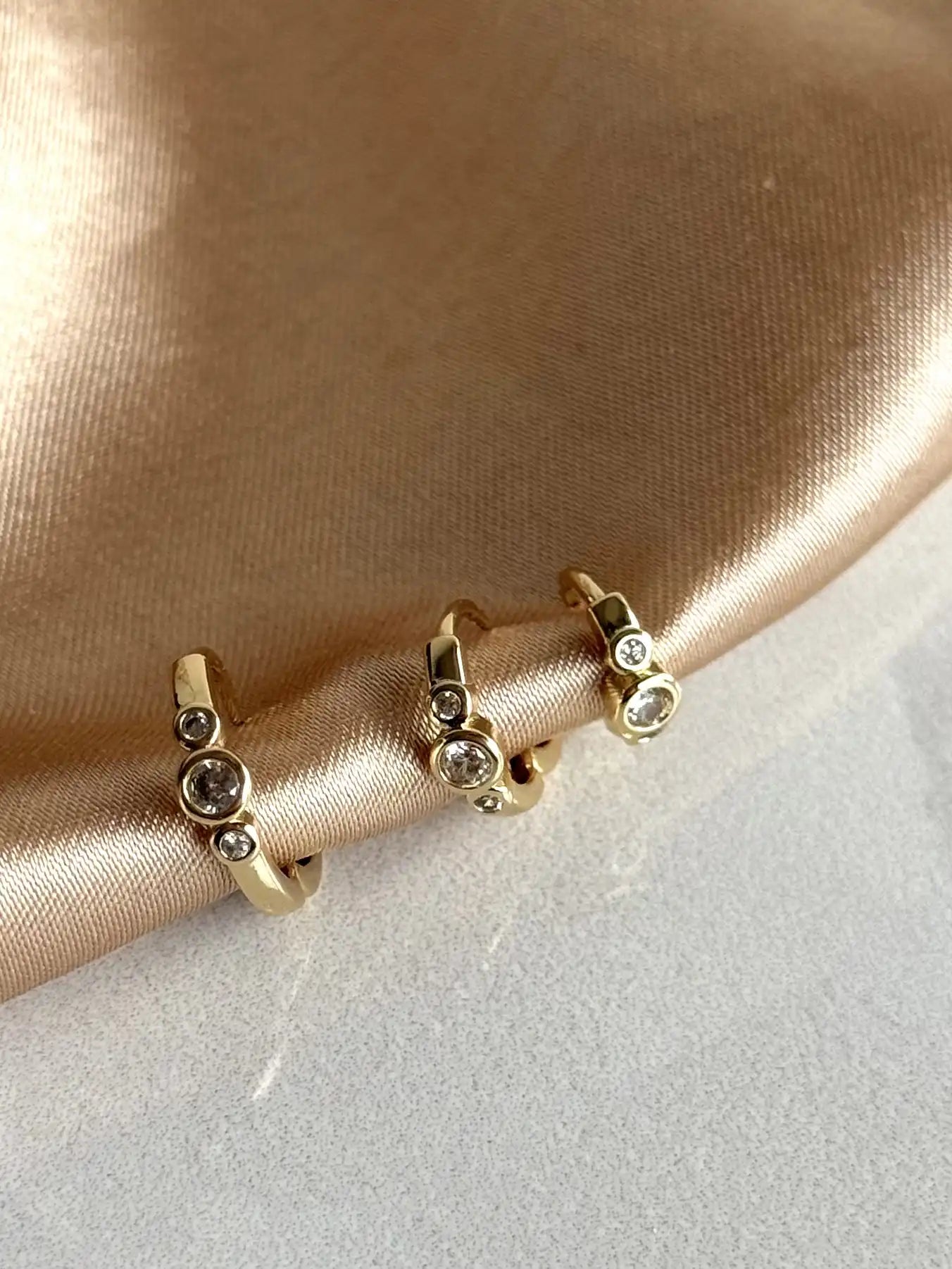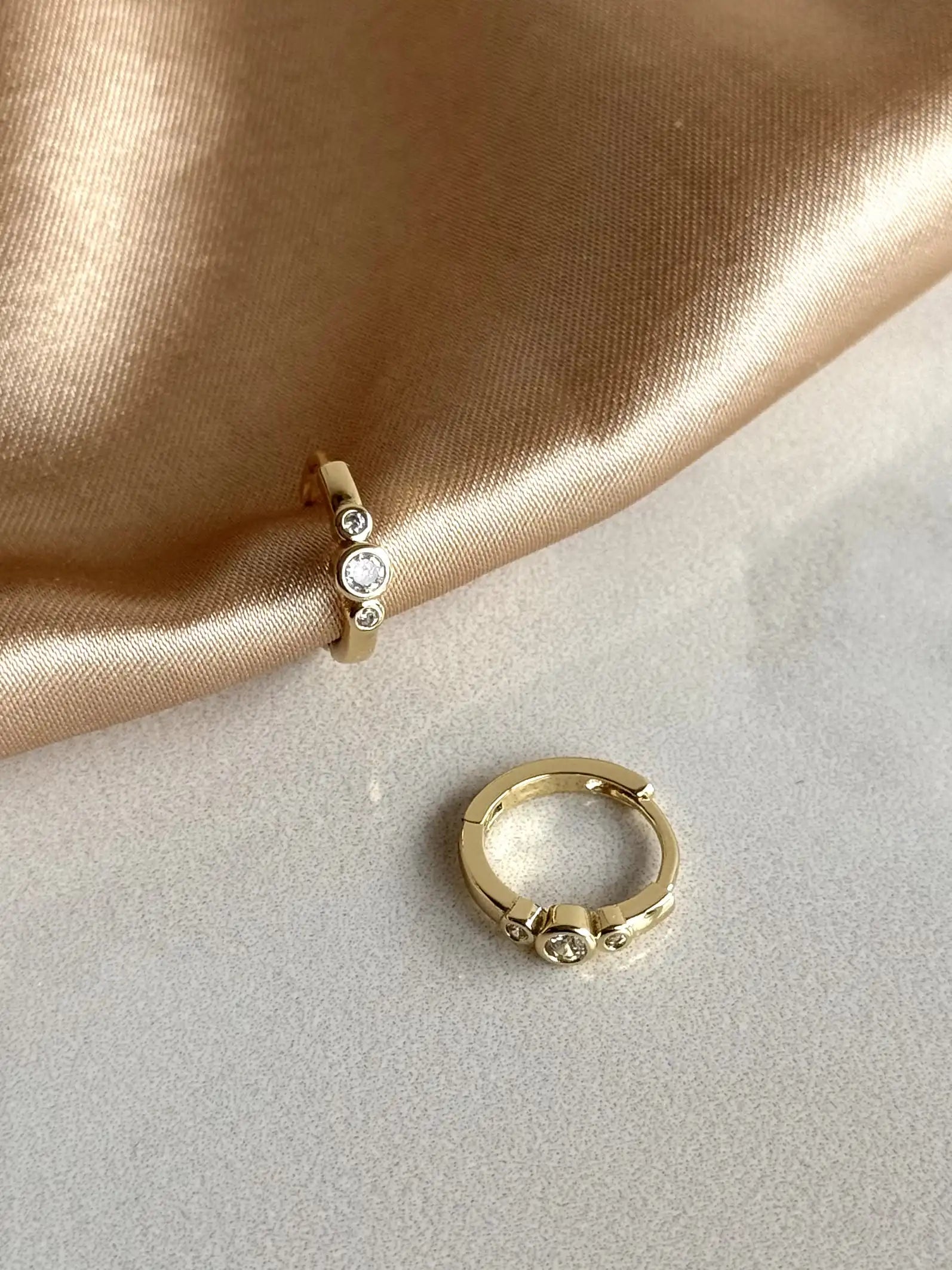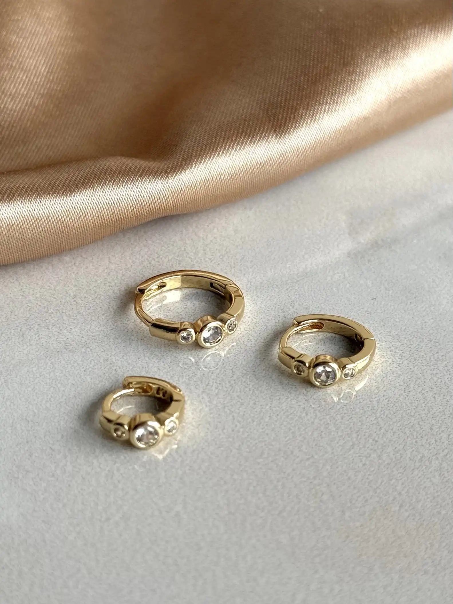 Üç Taşlı Halka Küpe (3 Boy) 14 Ayar Serisi