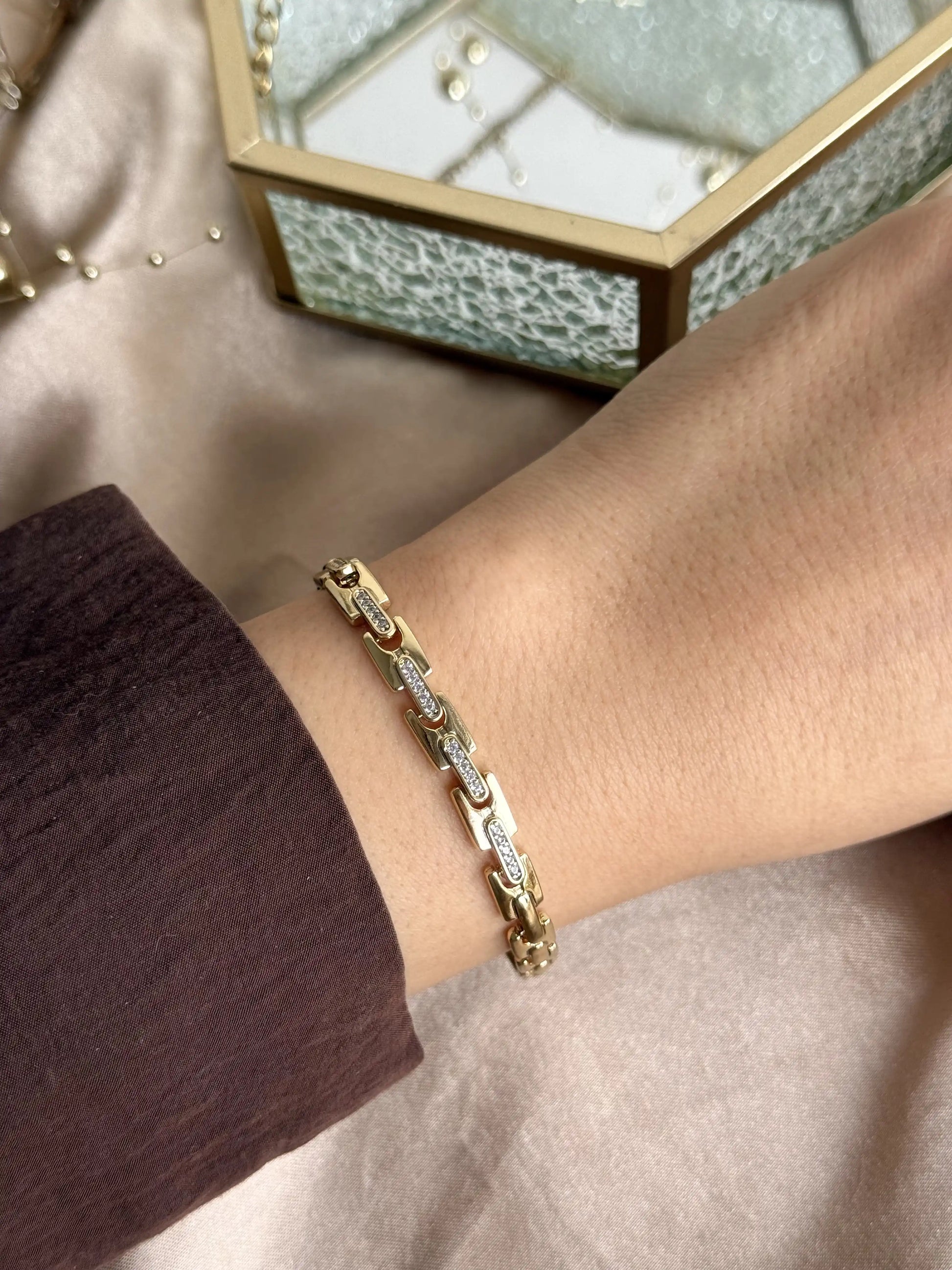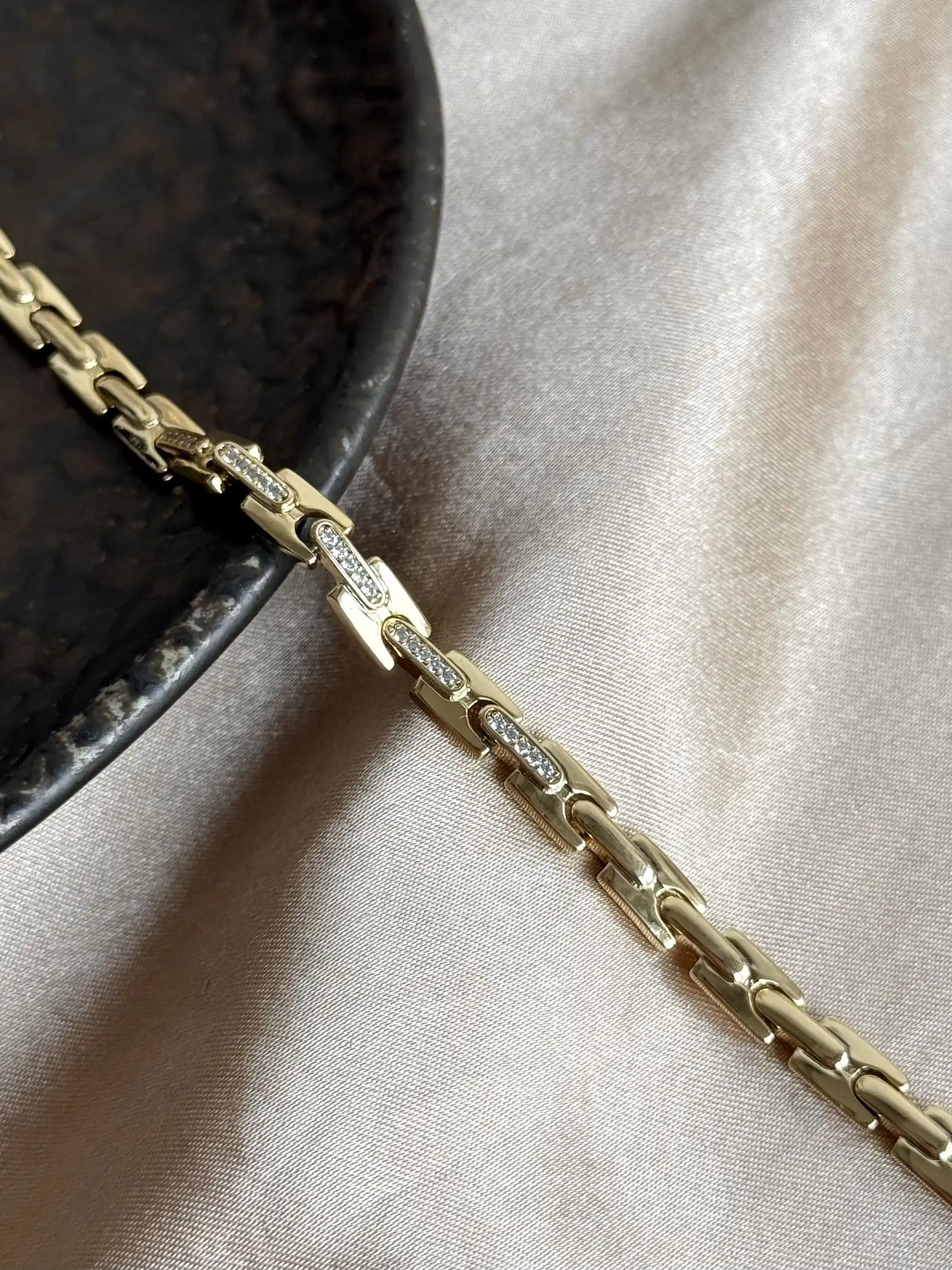 Vinatage Taşlı Zincir Bileklik 14 Ayar Özel Seri