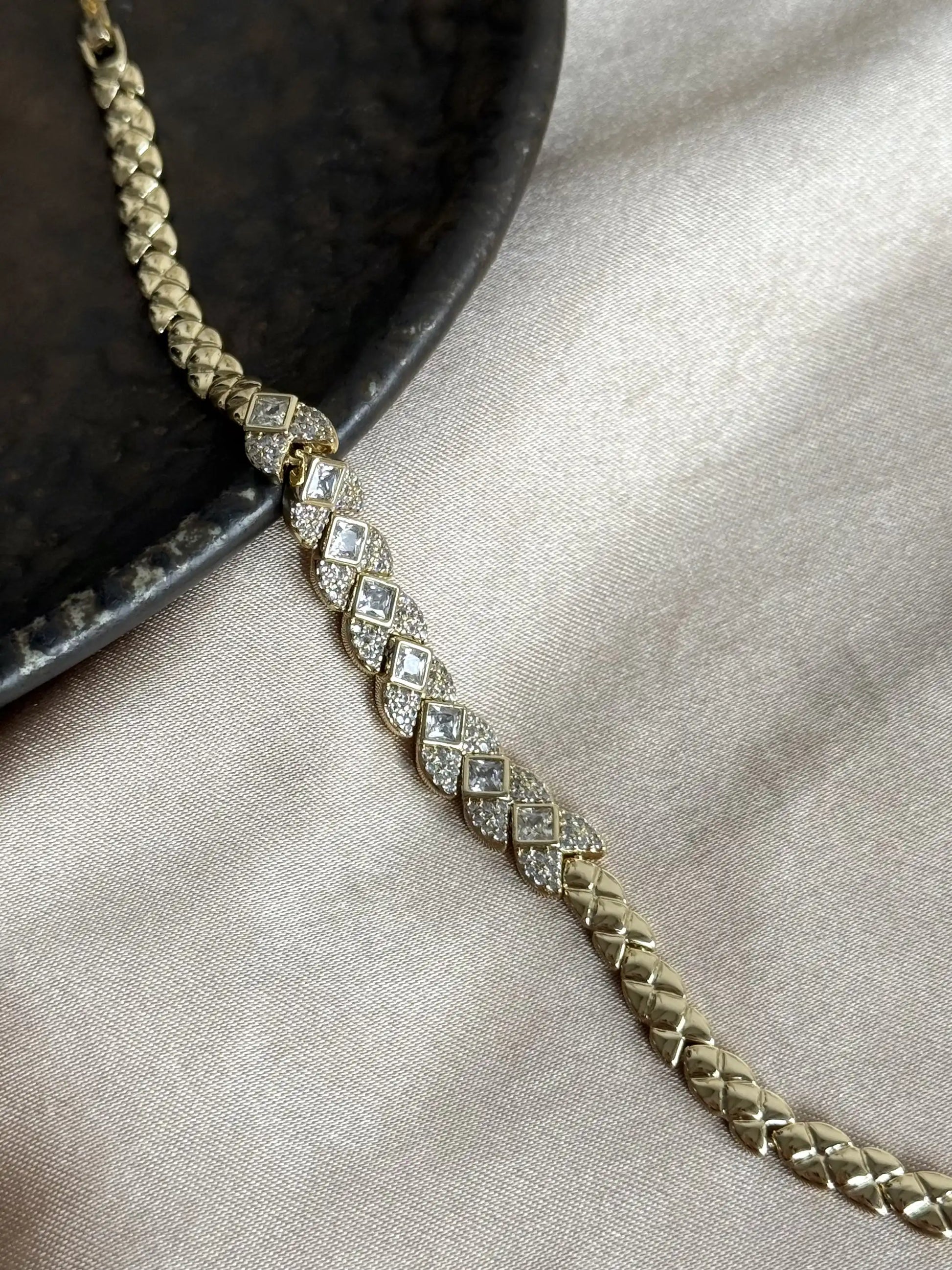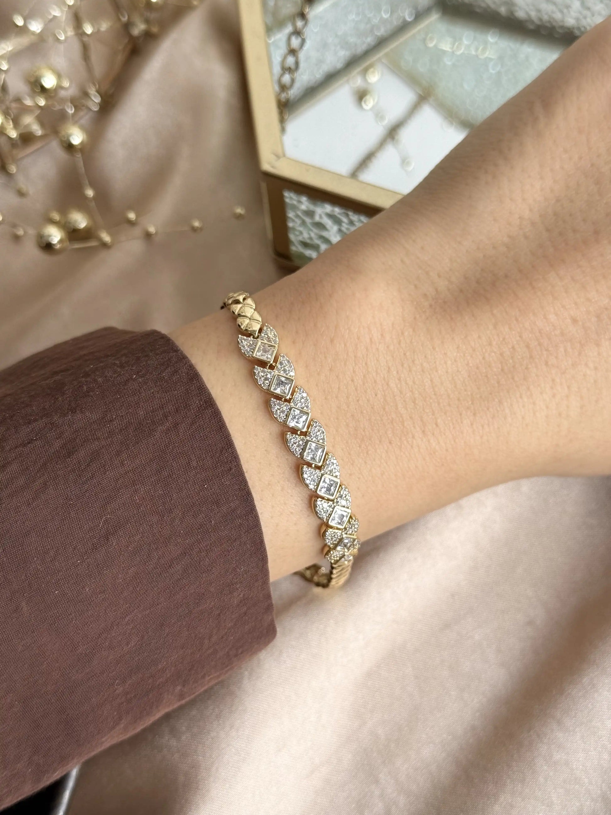 Vintage Taşlı Desenli Bileklik 14 Ayar Özel Seri