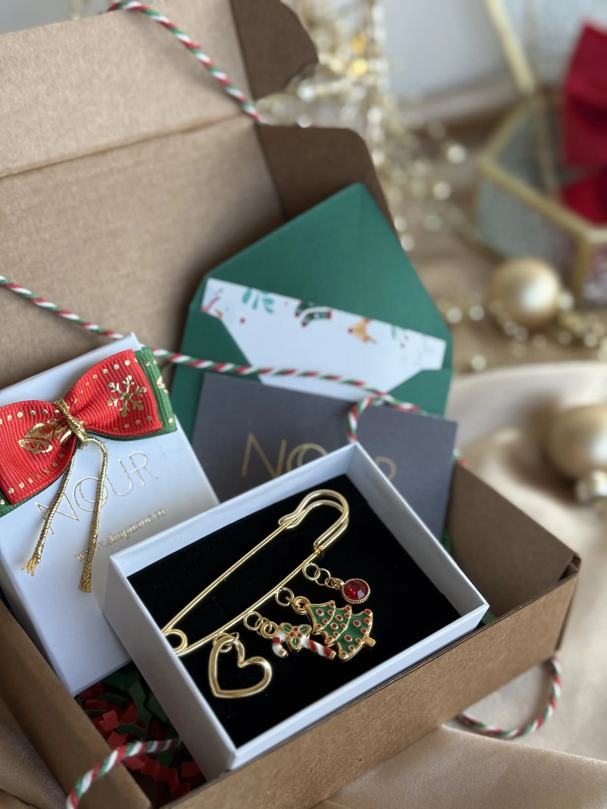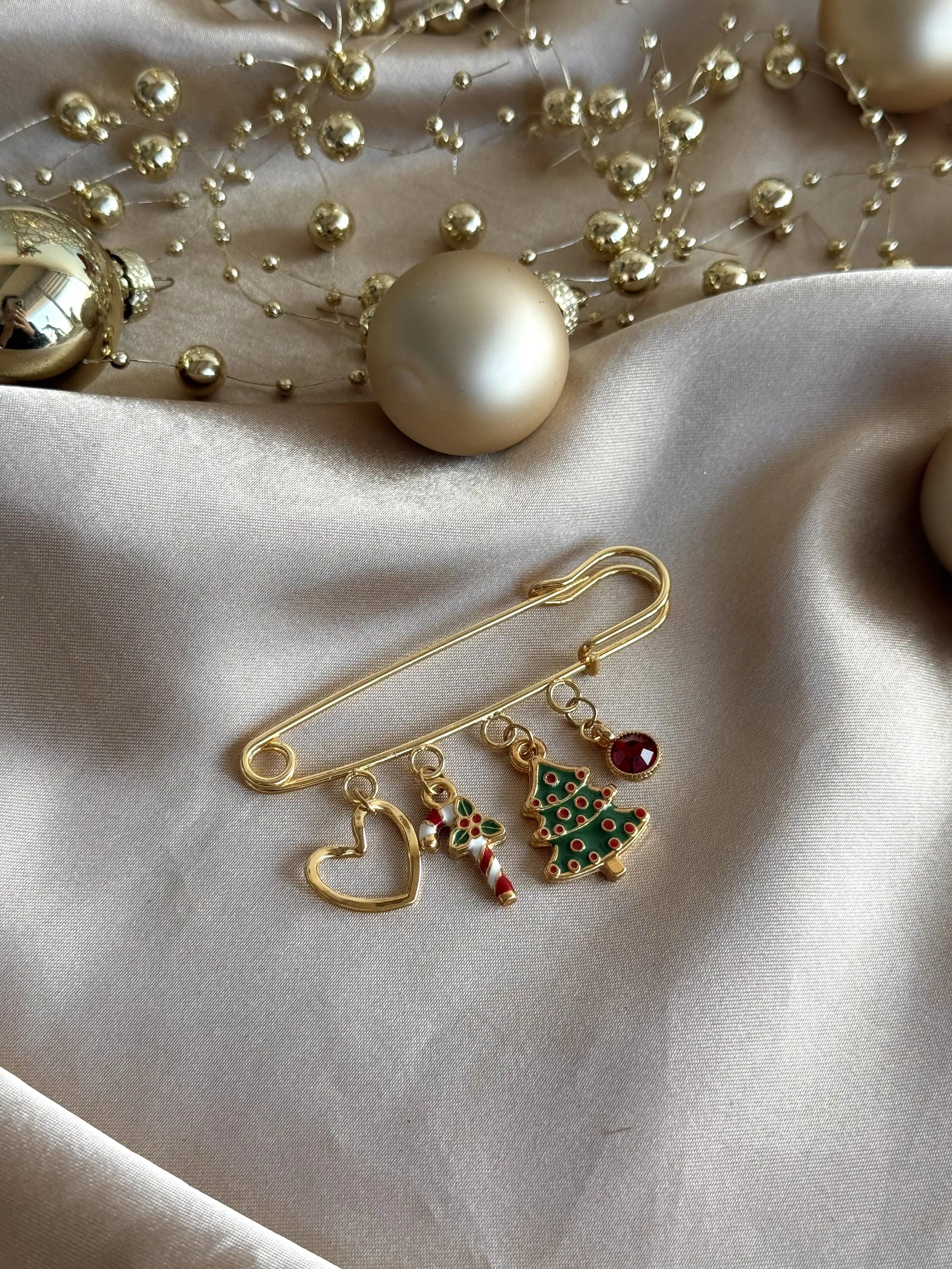 Pirinç üstü altın kaplama iğne ve charmlar kullanılır.