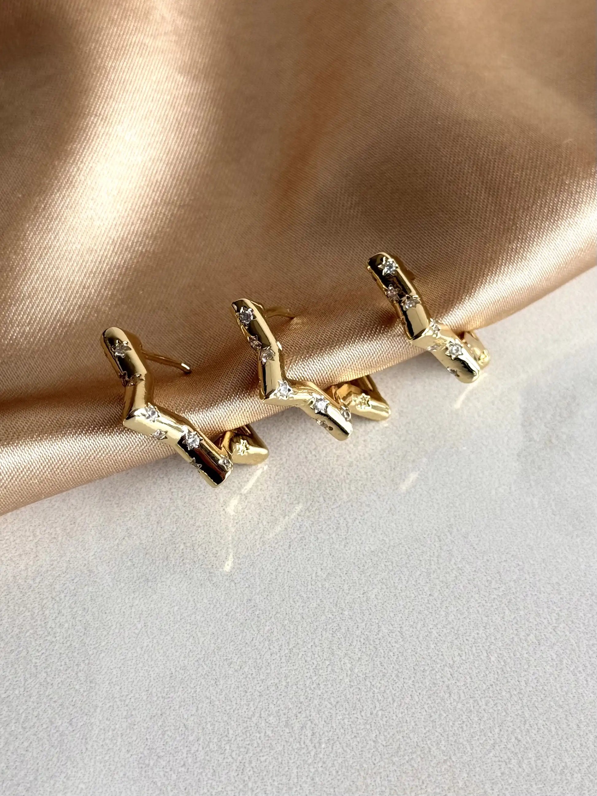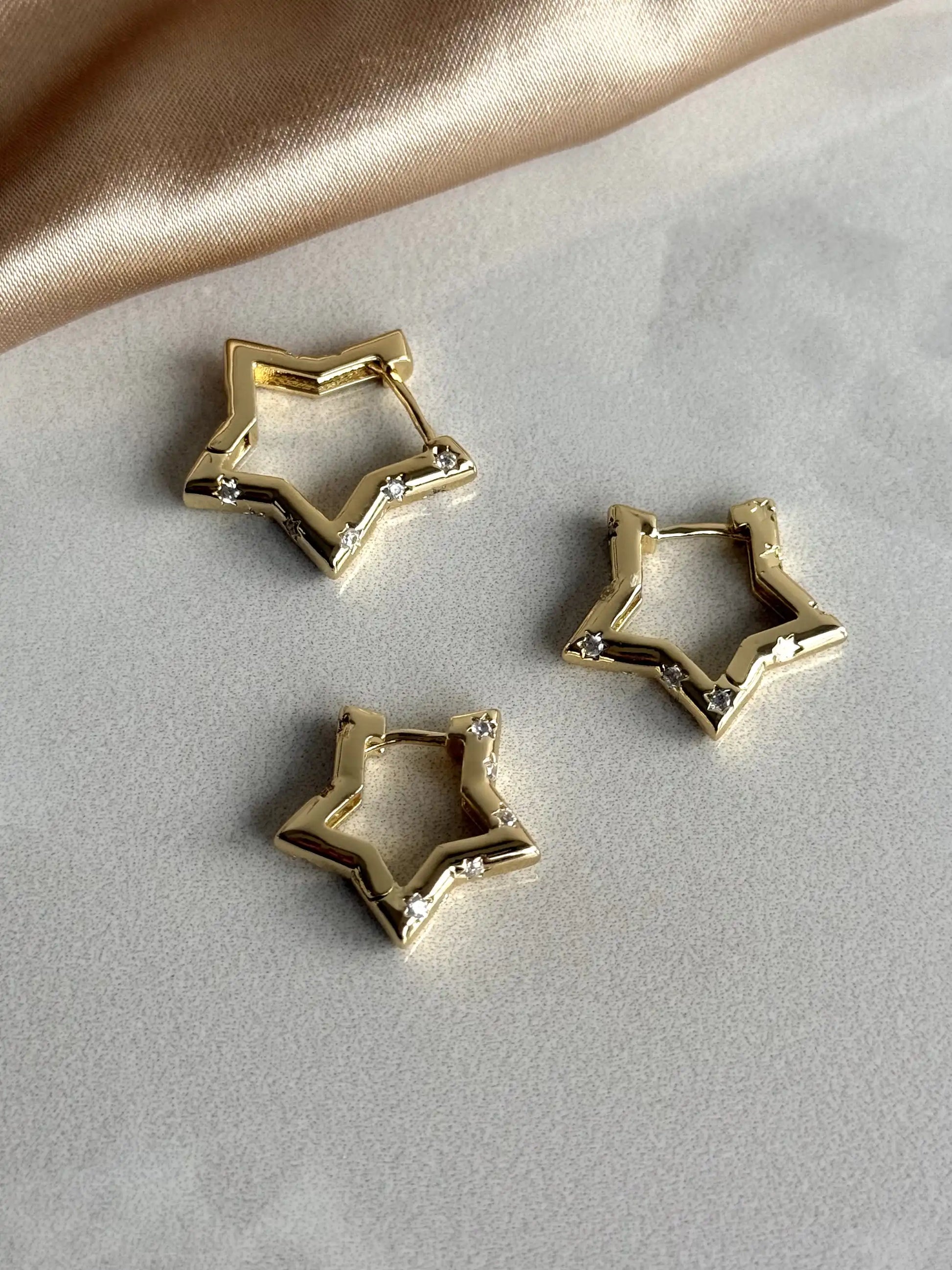 Yıldız Taşlı Küpe (3 Boy) 14 Ayar Serisi