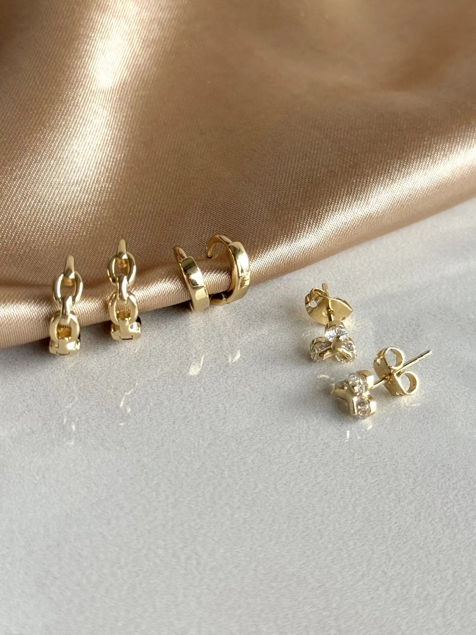 Zincir Halka 6'lı Set Küpe 14 Ayar Serisi