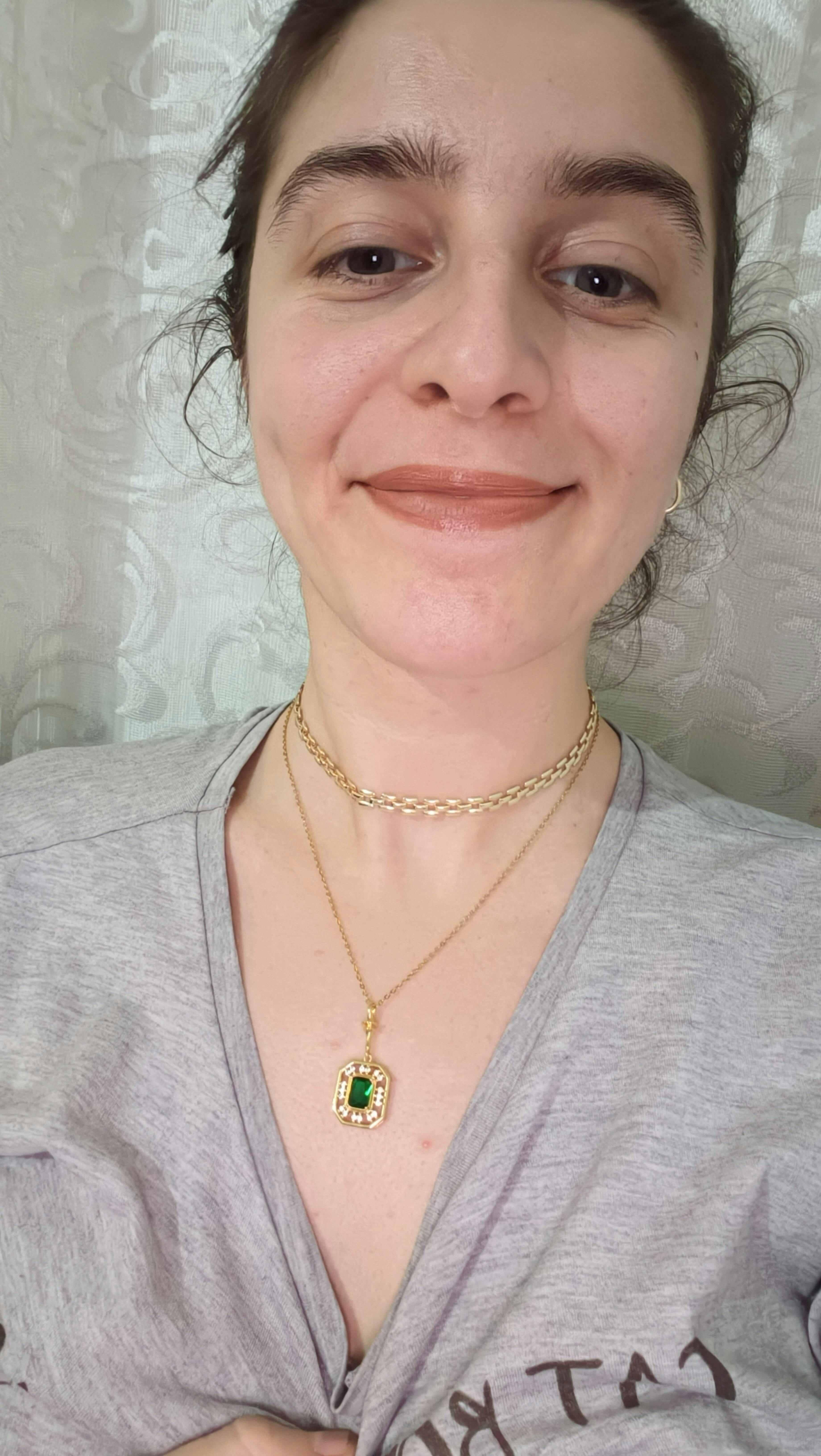 Zinciri çeliktir kararma yapmaz, ucu pirinç üstü altın kaplamadır. Zirkon taşlıdır. Altın kaplama uçlarda ıslak ortam, kimyasal önerilmez.